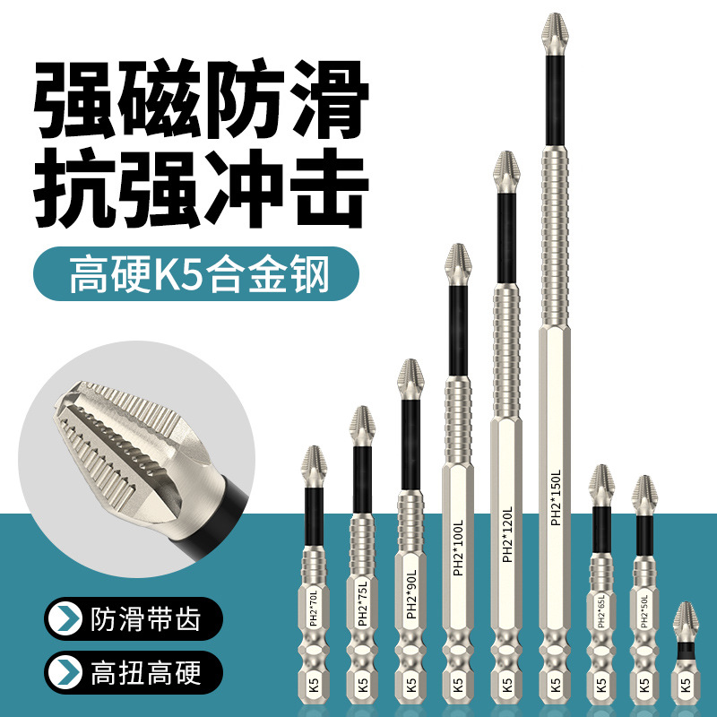 K 5ねじ耐衝撃滑り止めヘッド十字強磁気ドリルヘッド電動ドライバー超硬六角ヘッド