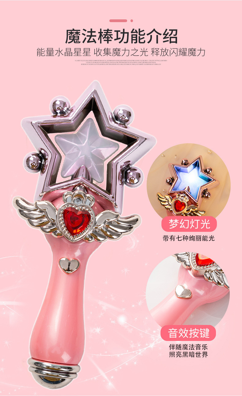メッキ工芸姫音光音楽棒星型子供魔法棒発光女の子ままごと玩具