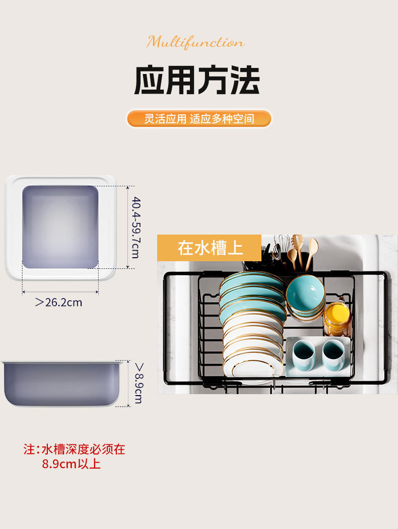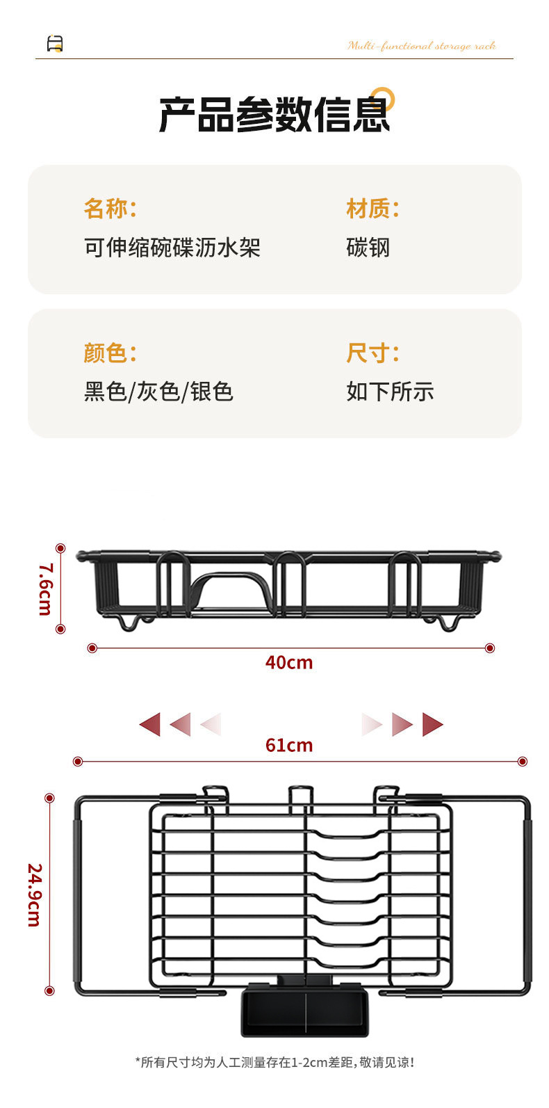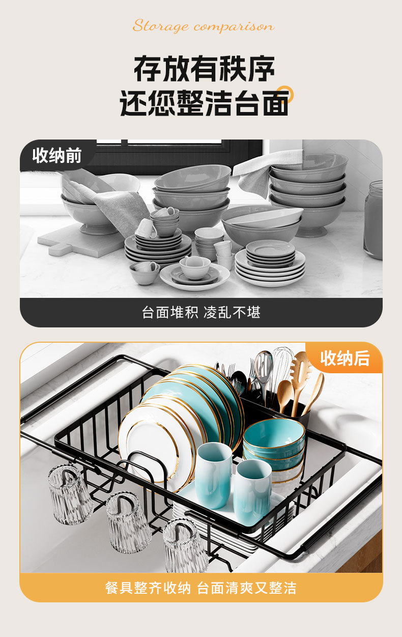 亚马逊可伸缩水槽碗碟收纳架餐叉水杯沥水架厨房台面碗碟置物架