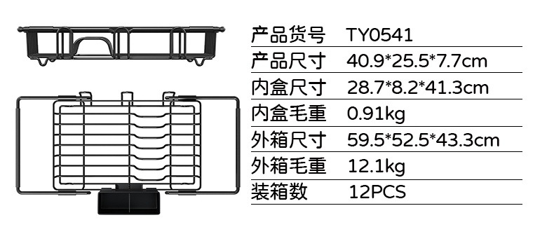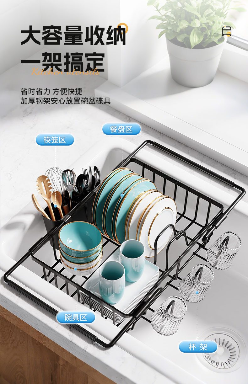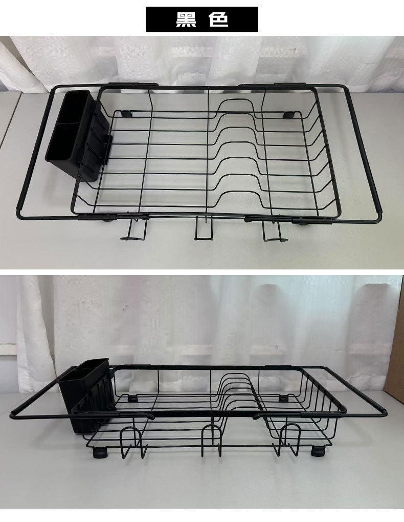 跨境简约黑色可伸缩水槽碗碟沥水架水杯收纳厨房台面碗碟置物架