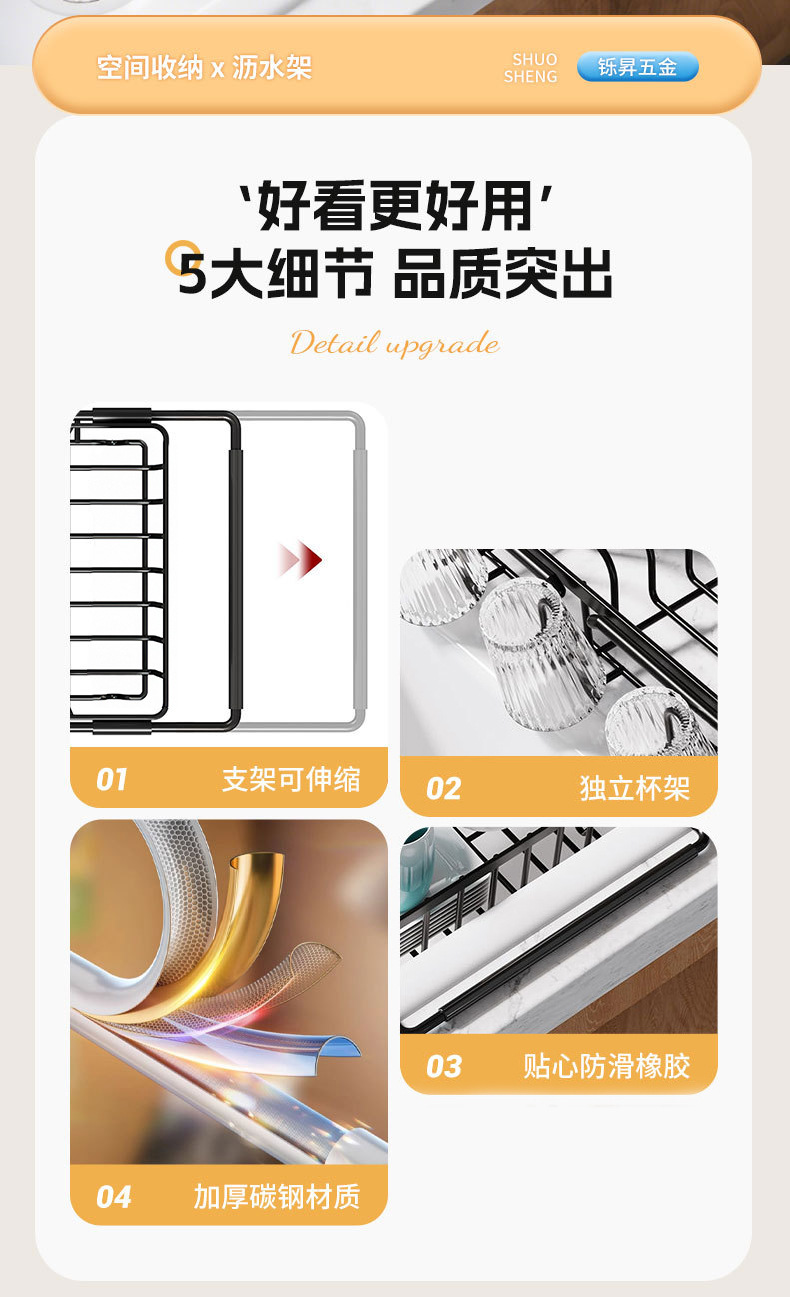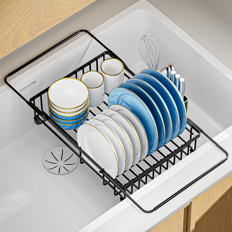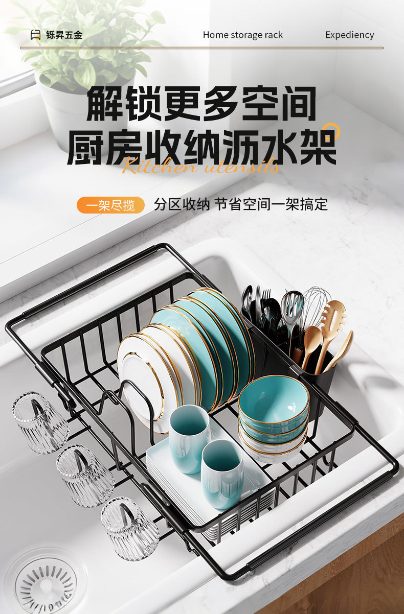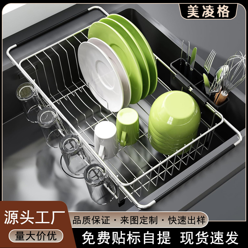 跨境新款可伸缩水槽碗碟沥水架大容量水杯碗盘收纳家用厨房碗碟架