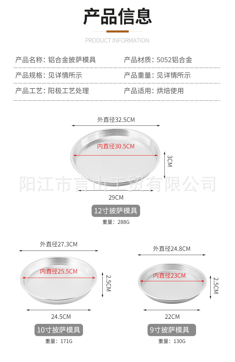 铝合金阳极氧化浅披萨盘派盘烤盘6/7/8/9/10寸