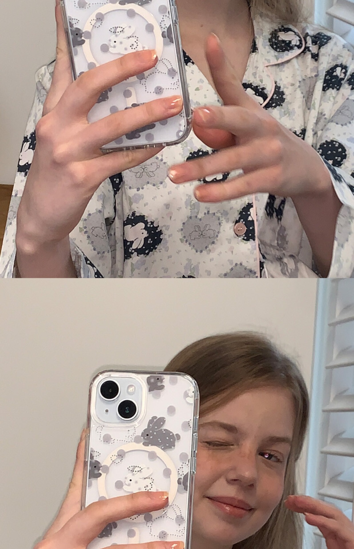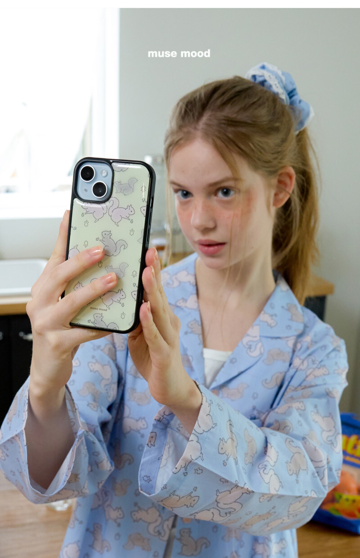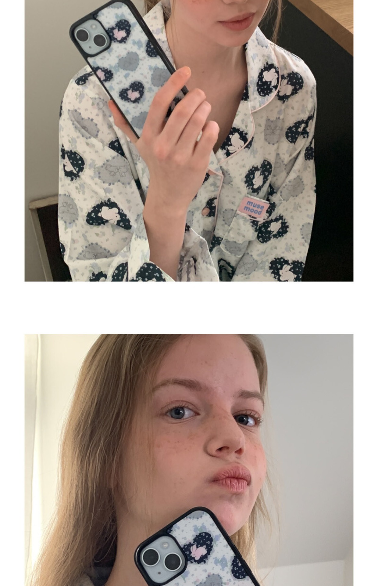 Musemood韓国代理購入超かわいいウサギの羊の漫画の携帯ケースの黒い縁のゴムの殻の携帯電話