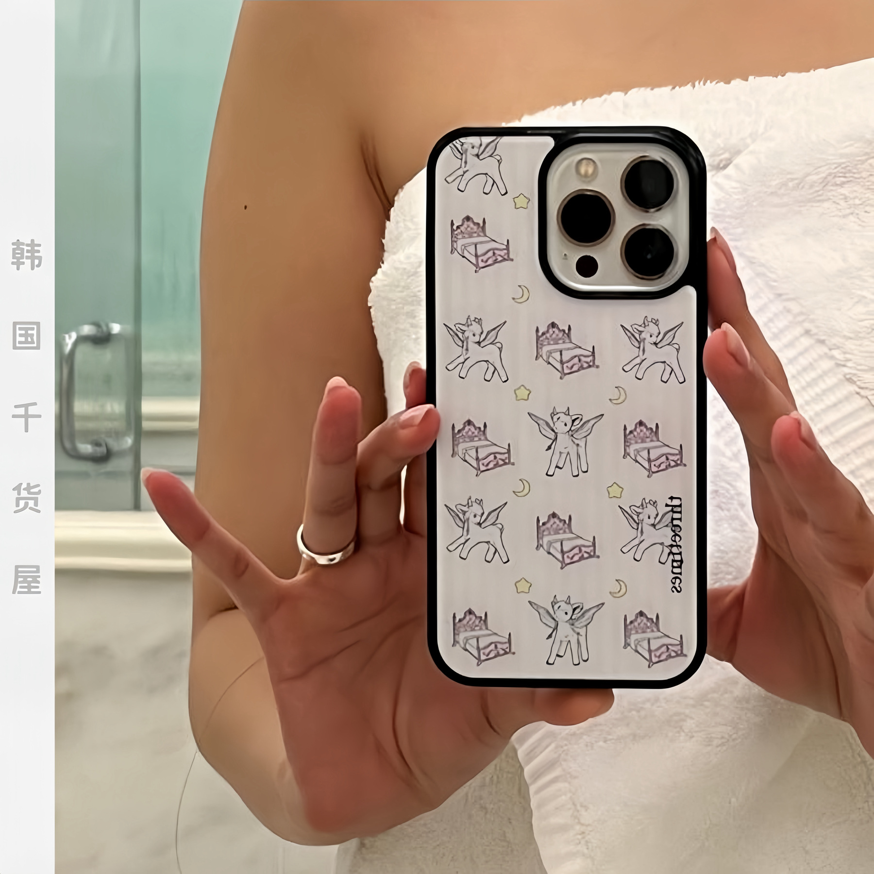 Threetimes韓国レトロ小衆可愛いユニコーンストライプ黒縁携帯ケースカバーカバーカバーカバー