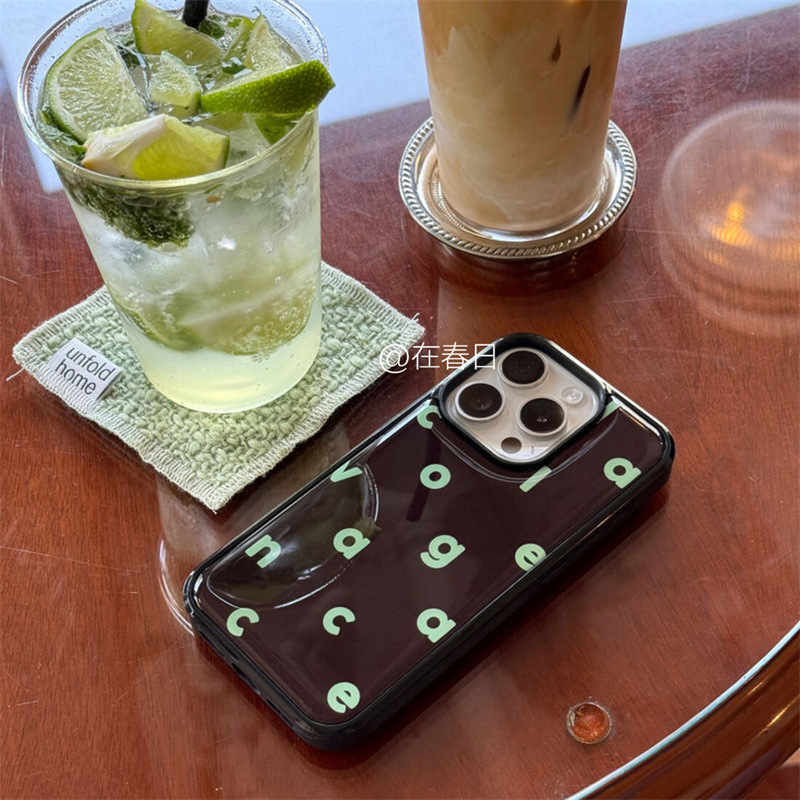 春の韓国ブロガーと同じスタイルのエポキシミントグリーンブラウン携帯電話ケース Apple 15promax/14 新しい