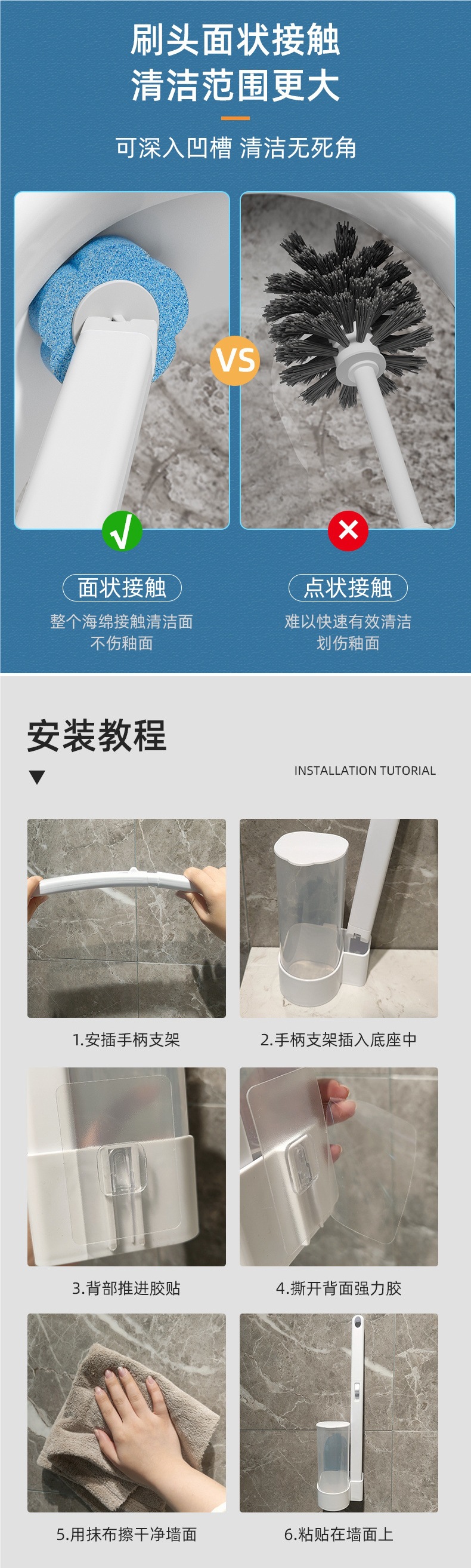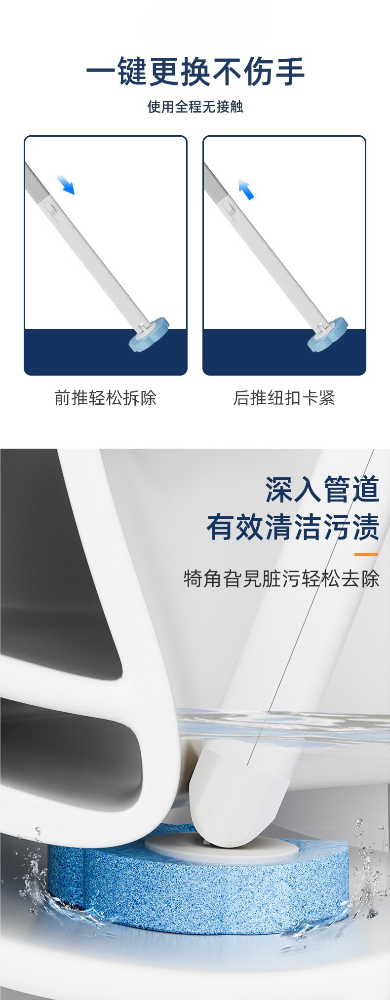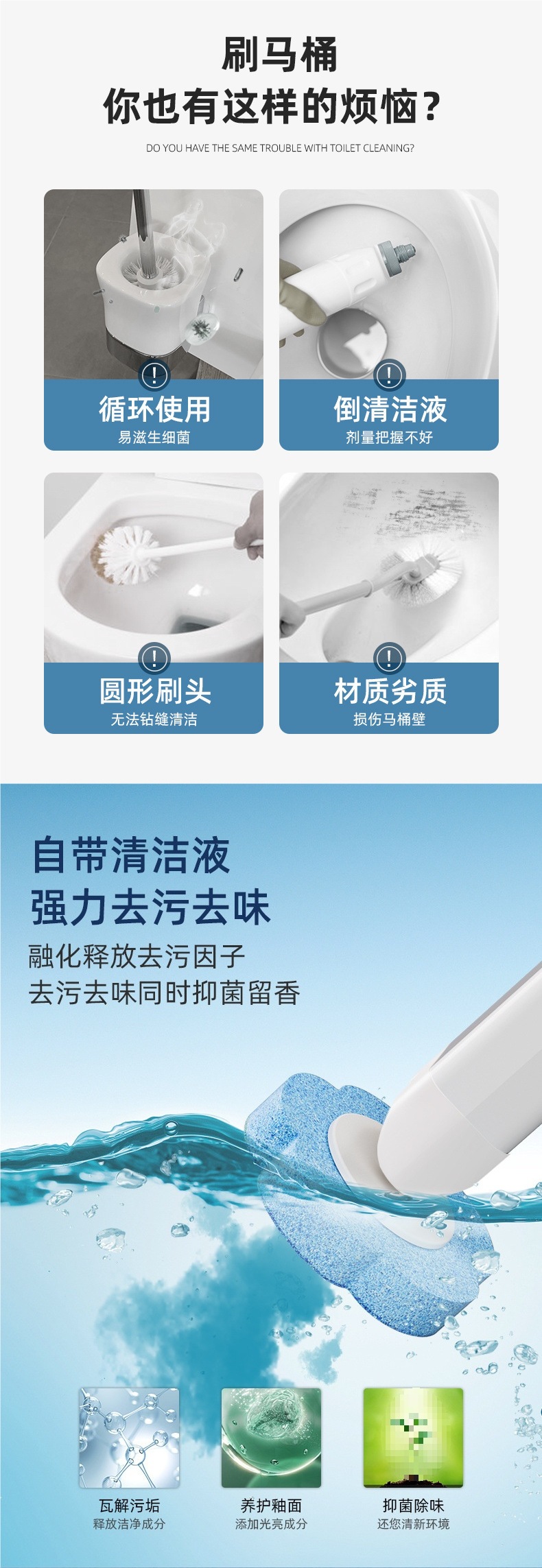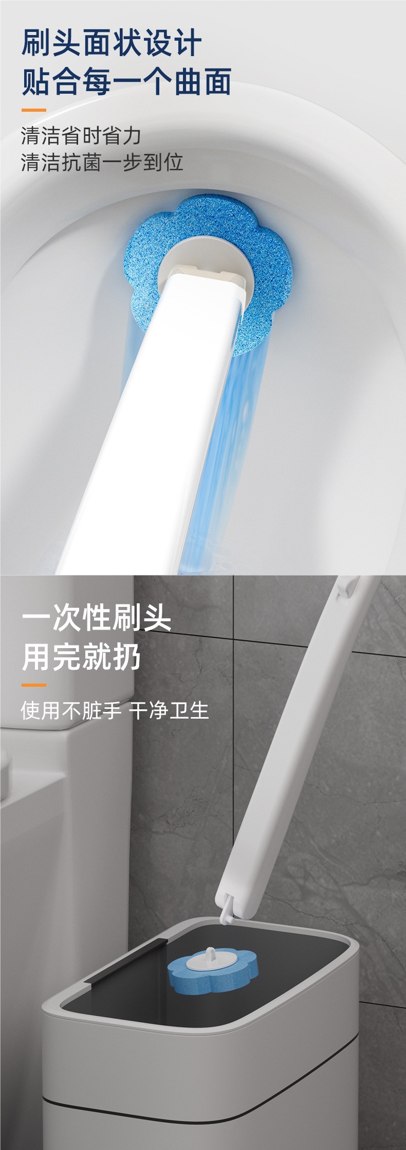 洗浄不要の使い捨てトイレブラシセット交換用クリーニングブラシブラシロッドユニバーサルトイレブラシ死角なしで掃除