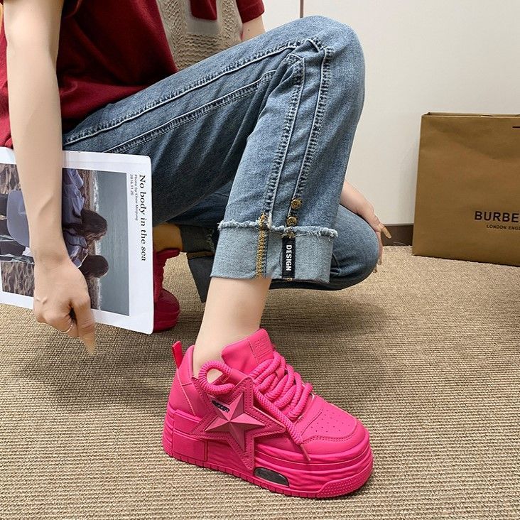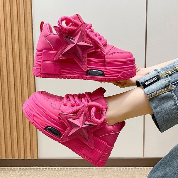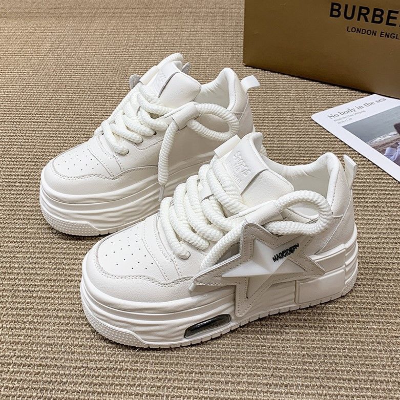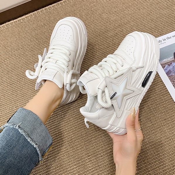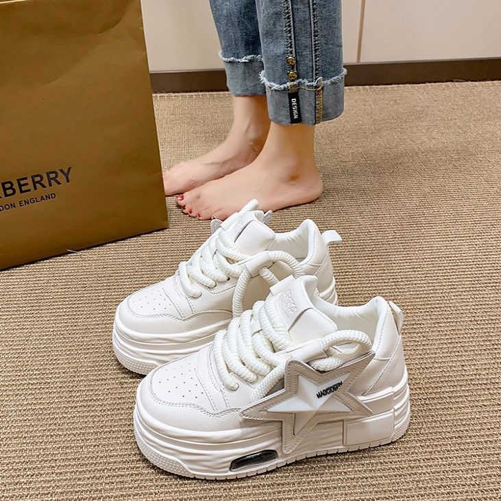 独立系ブランドのトレンド新作、五芒星柄厚底プラットフォームシューズ、レディースファッションカジュアルシューズ、白スニーカー