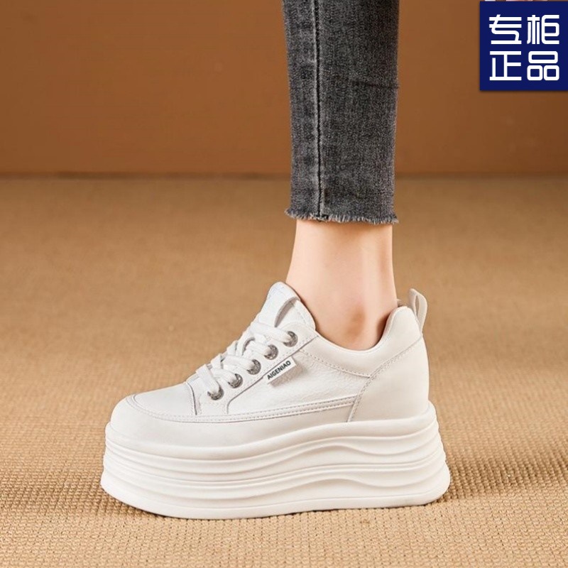 8cmの女性用白靴2025春の新作厚底白スニーカー10cm小柄な女性の身長を伸ばす靴