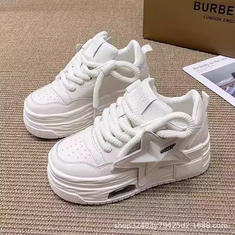 白い靴の星2024春と秋の超火の快適なエアクッションの板の靴の厚い底は高くてデザイン感のドーパミンのパンの靴を高めます。
