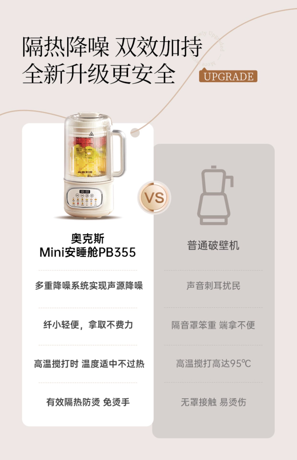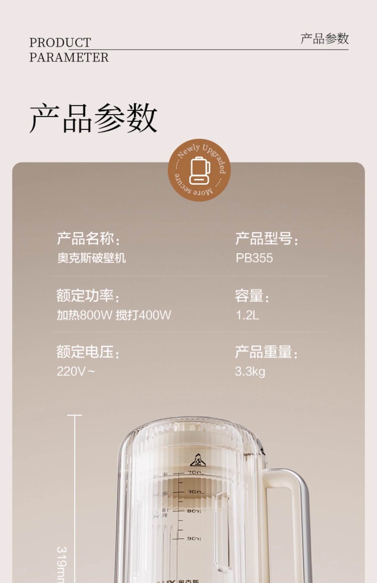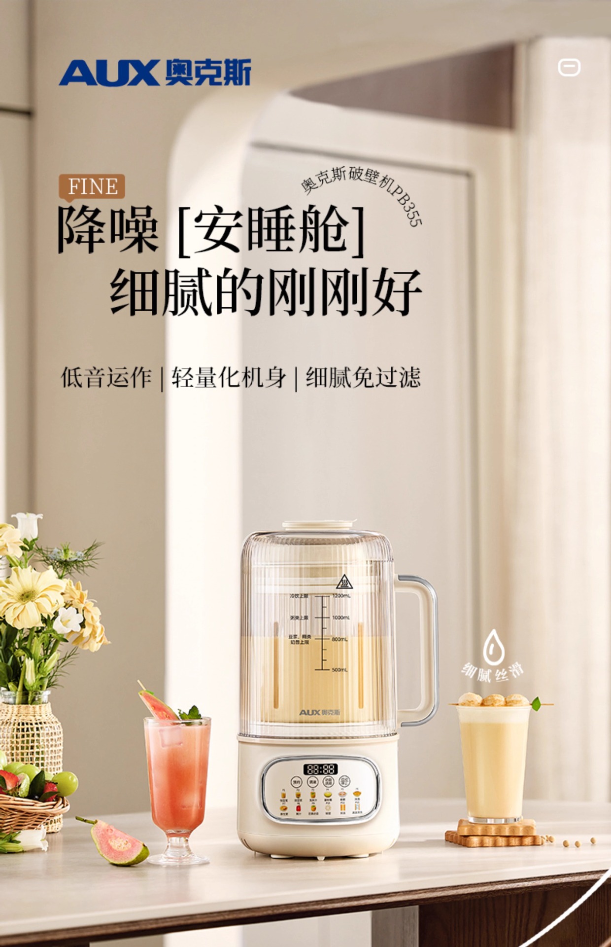 奥克斯豆浆破壁机家用全自动小型厨房多功能料理机果汁榨汁机礼品