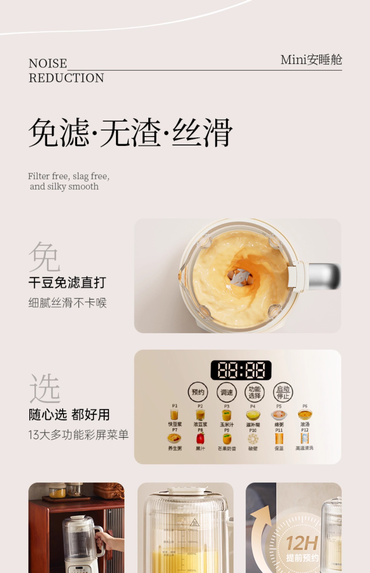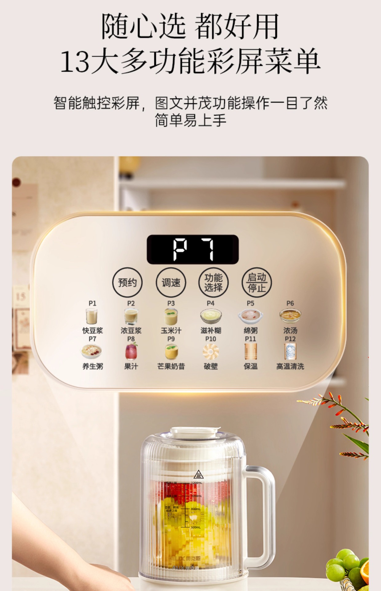 新型静音破壁機多機能知能加熱型家庭用豆乳機全自動搾汁補助料理機