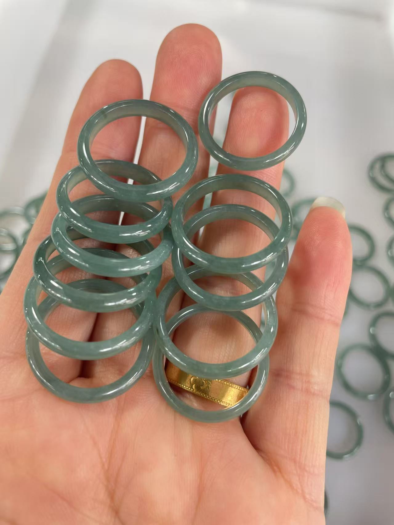 ビルマ翡翠アイス種Aグレードリングブルーウォーターアイス種リング男女兼用リング大リングランニングリングジュエリー