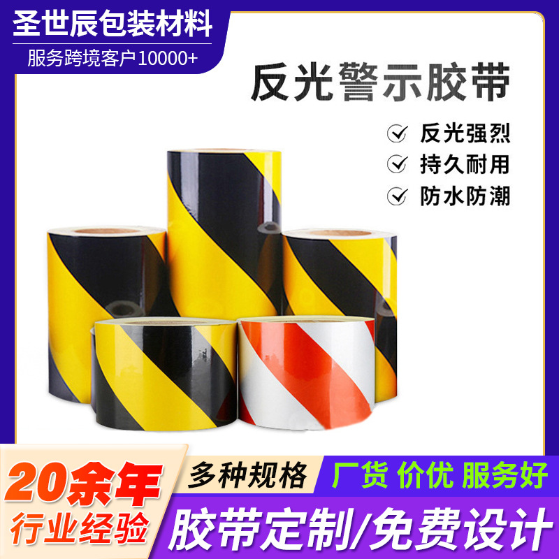 工場在庫 交通反射警告テープ 高粘度 黄黒 道路標識 耐摩耗性 反射フィルム 卸売 粘着剤付き