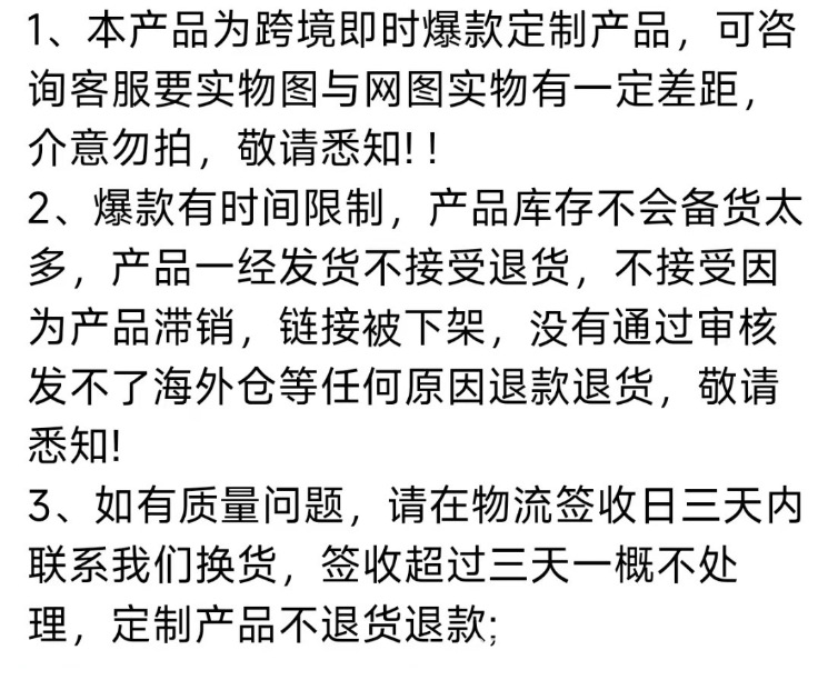 1688.comは中国で生産され、流通している商品を扱うBtoB卸サイトとなります。お客様が弊社サイト内にて仕入処理をされても、日本国内の法律に則り、日本への輸入ができない商材もあり、その場合弊社でも仕入れの手配が出来ません。その際はシステム上で、自動的に注文削除となってしまう事を、恐れ入りますがご了承願います。