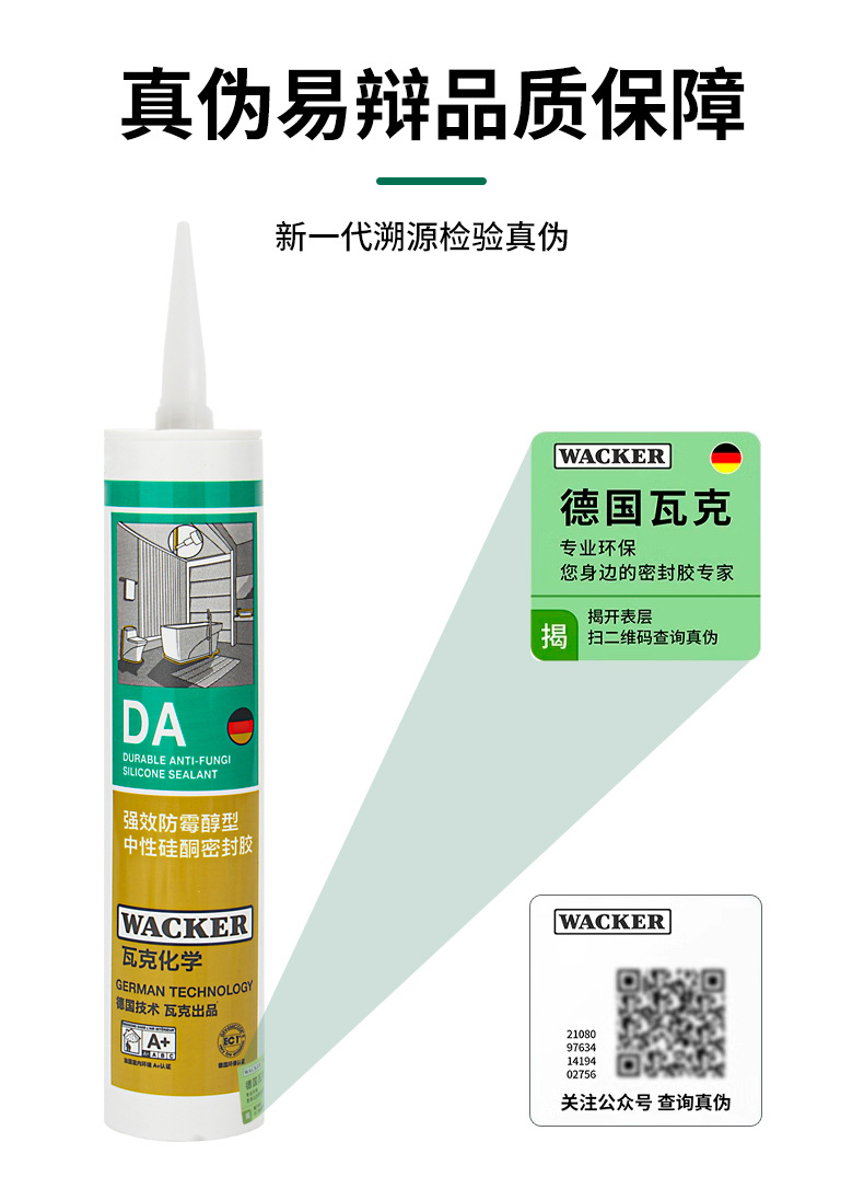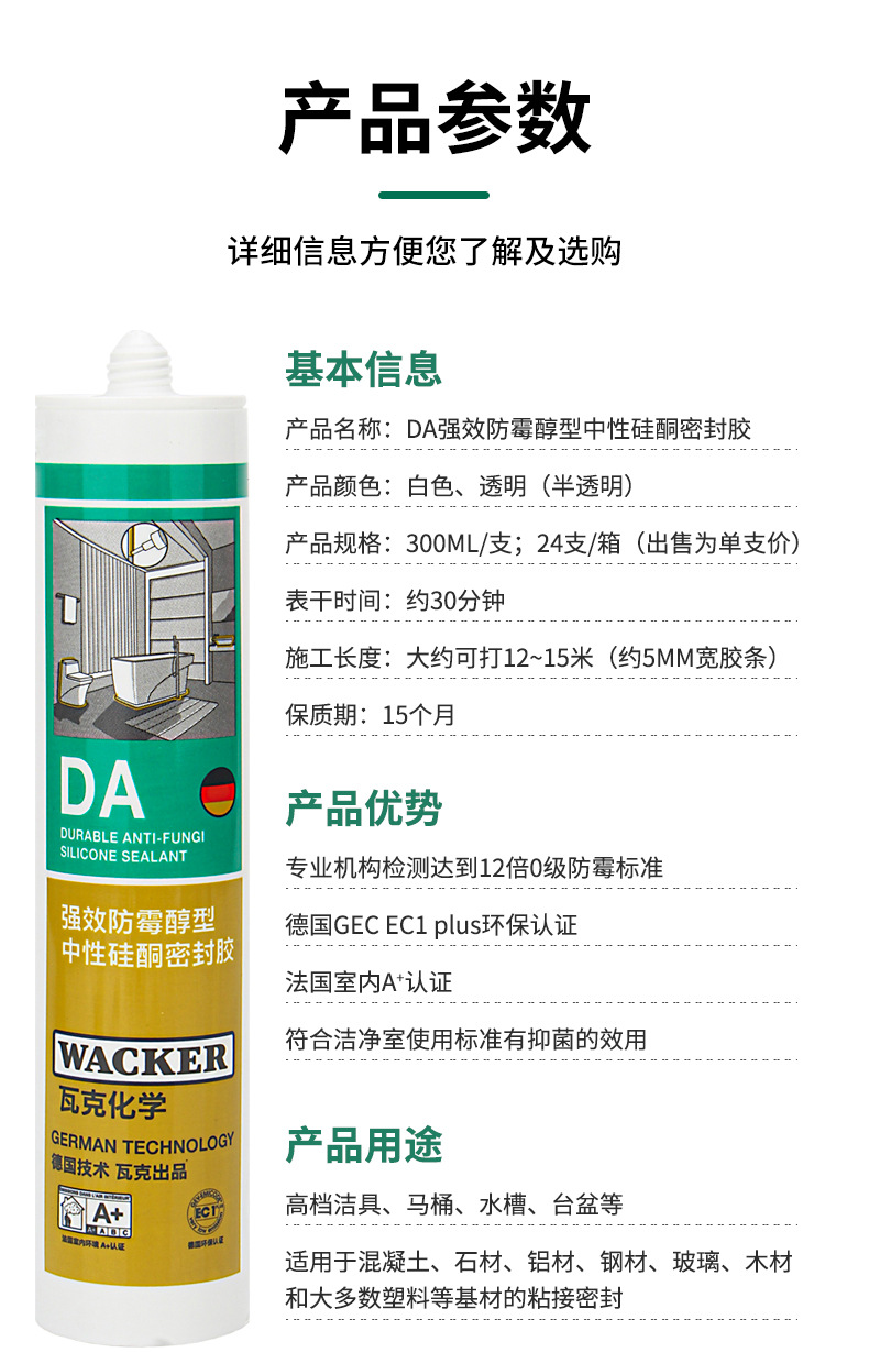 WACKER DA 防カビ接着剤防水キッチンとバスルームのトイレガラス接着剤透明中性家庭用シームエッジ防カビシーラント