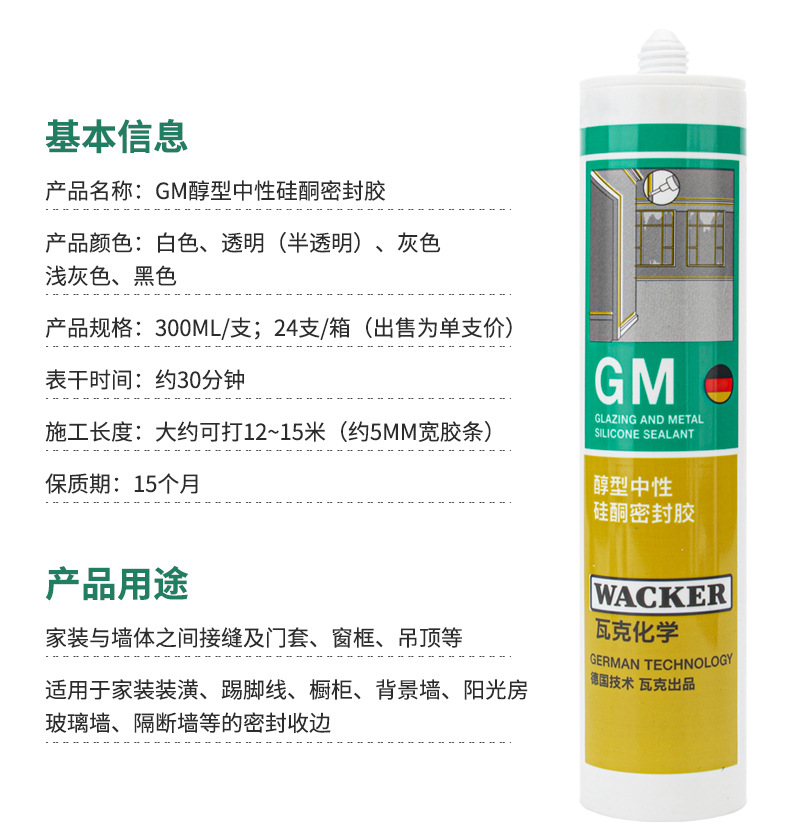 WACKER ガラス接着剤 GM OS 121 131DA GP SN ドアと窓の接着剤 キッチンとバスルームの防カビシール 美容エッジ接着剤