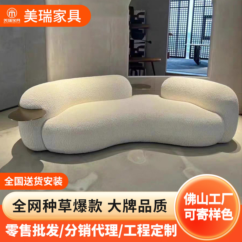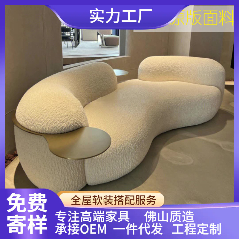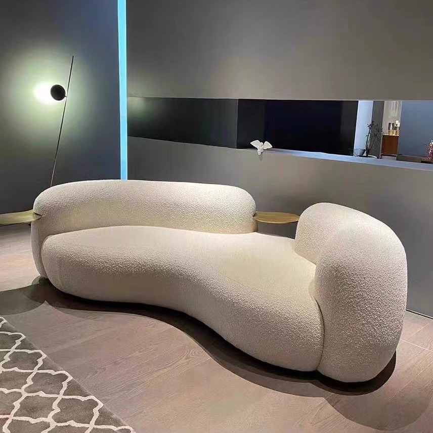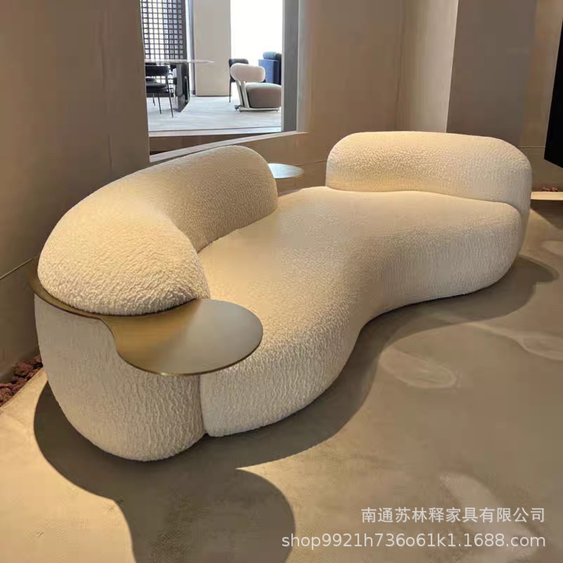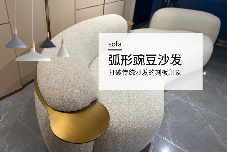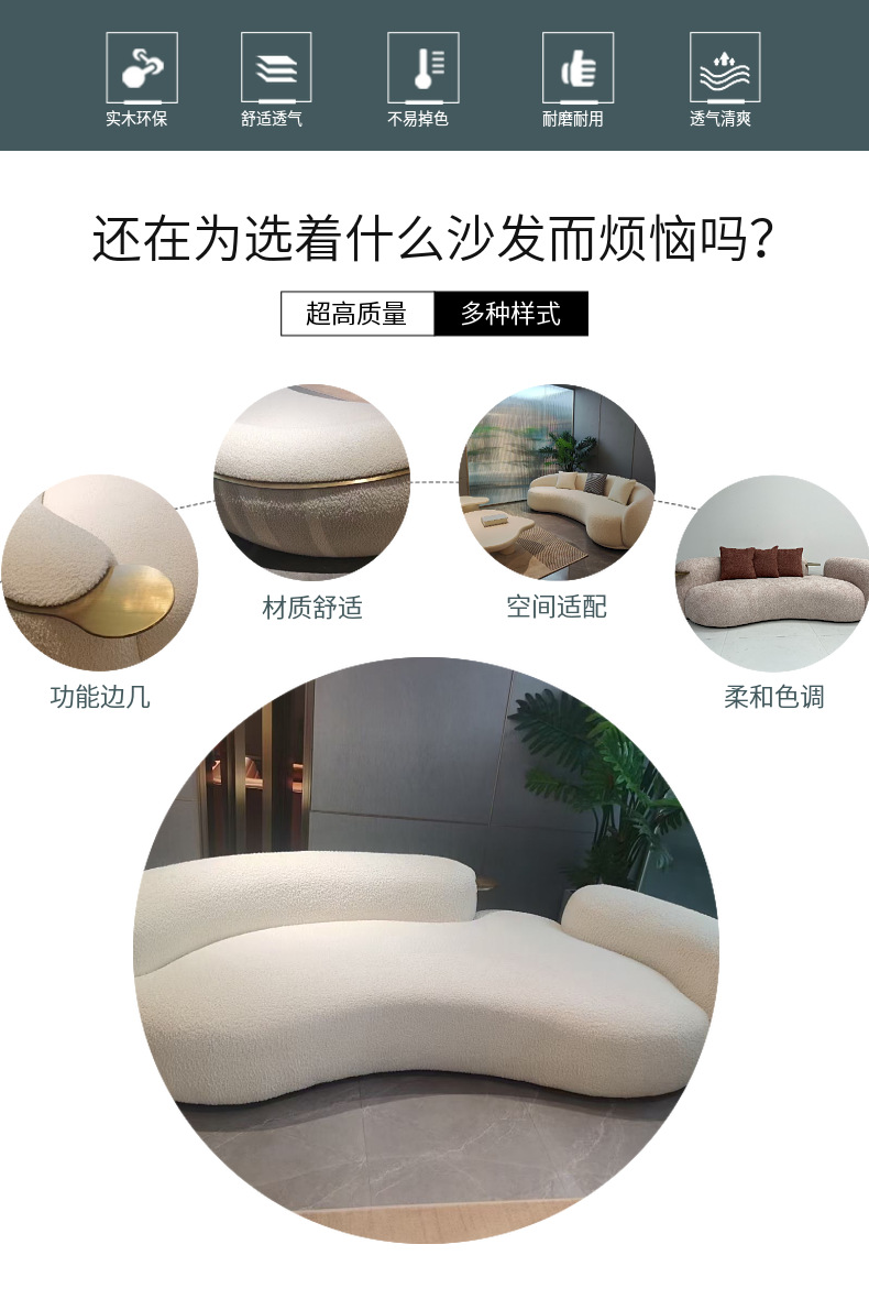 奶油风创意异形沙发轻奢意式豌豆弧形沙发客厅小户型羊羔绒美容院