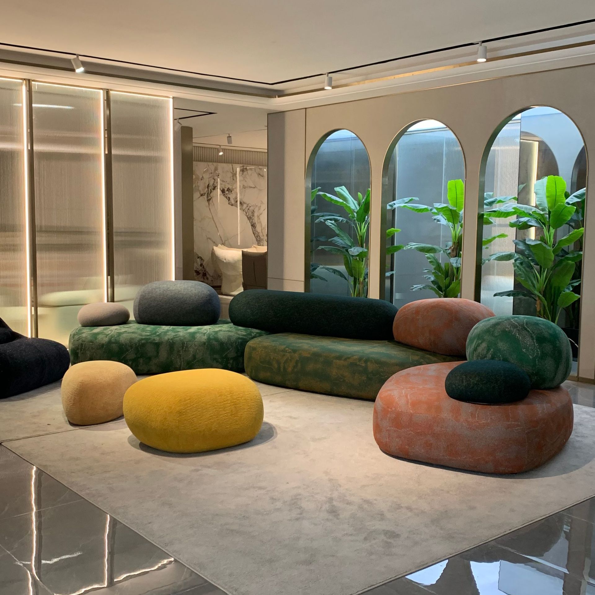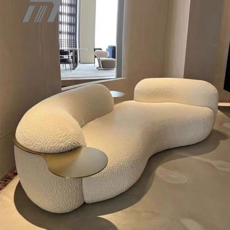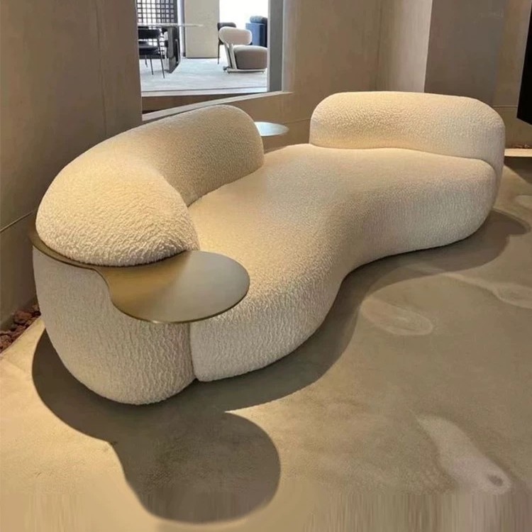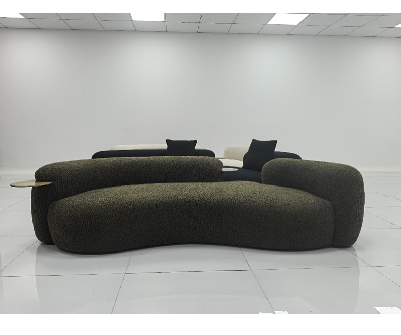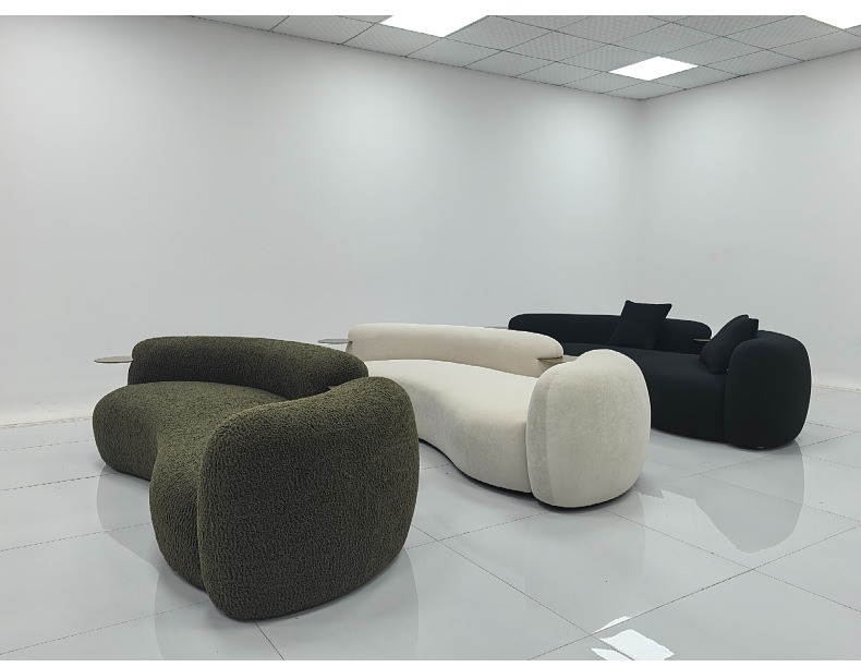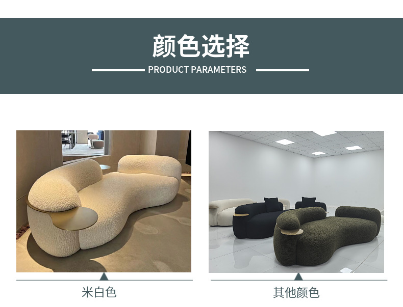 奶油风创意异形沙发轻奢意式豌豆弧形沙发客厅小户型羊羔绒美容院