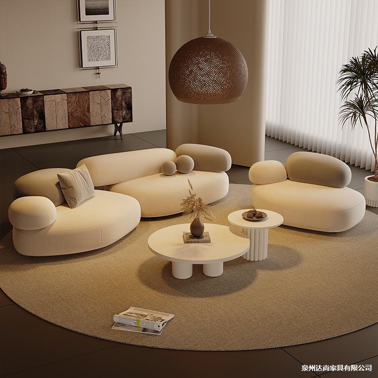 设计师豌豆沙发客厅现代轻奢小户型弧形异形法式奶油风布艺沙发