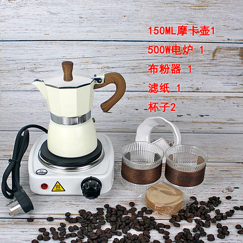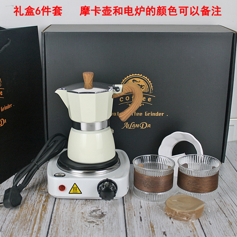 モカポットのコーヒーセットプレゼント式の手でコーヒー器具を煮ます。
