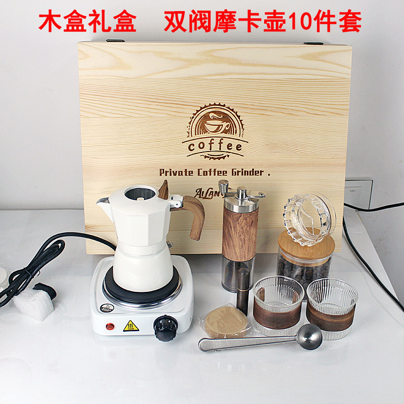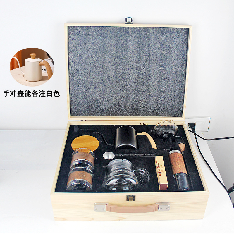 実木礼箱モカ壺手沖壺濾過壺磨豆機電気炉礼箱セットコーヒーポット双弁単弁