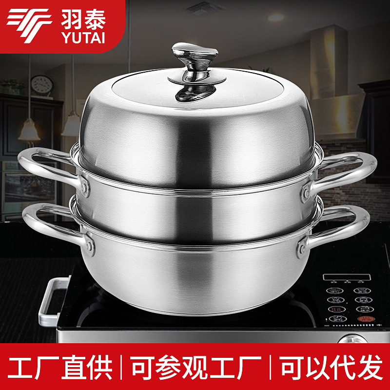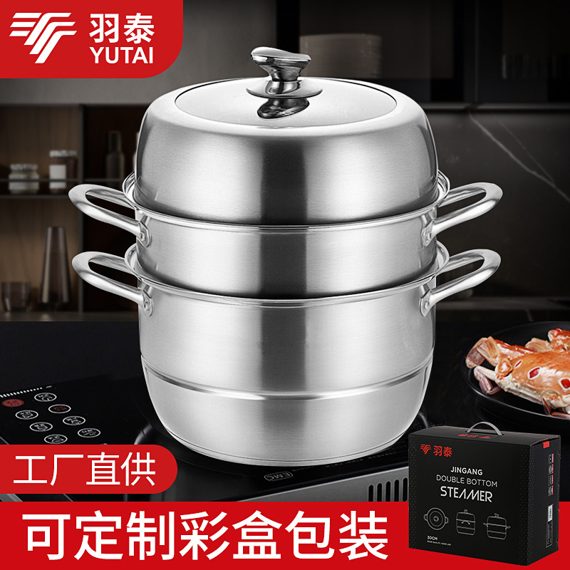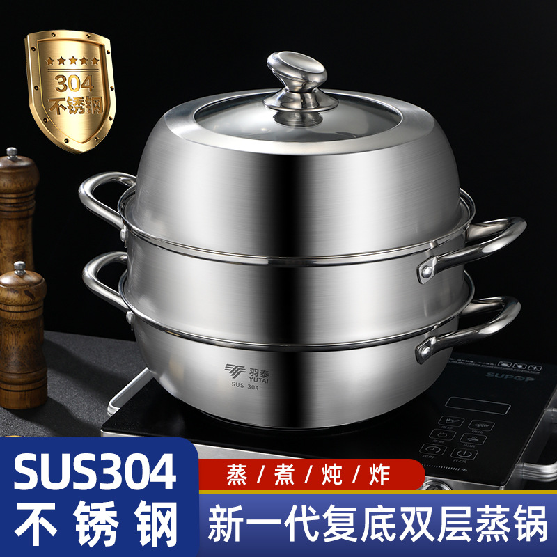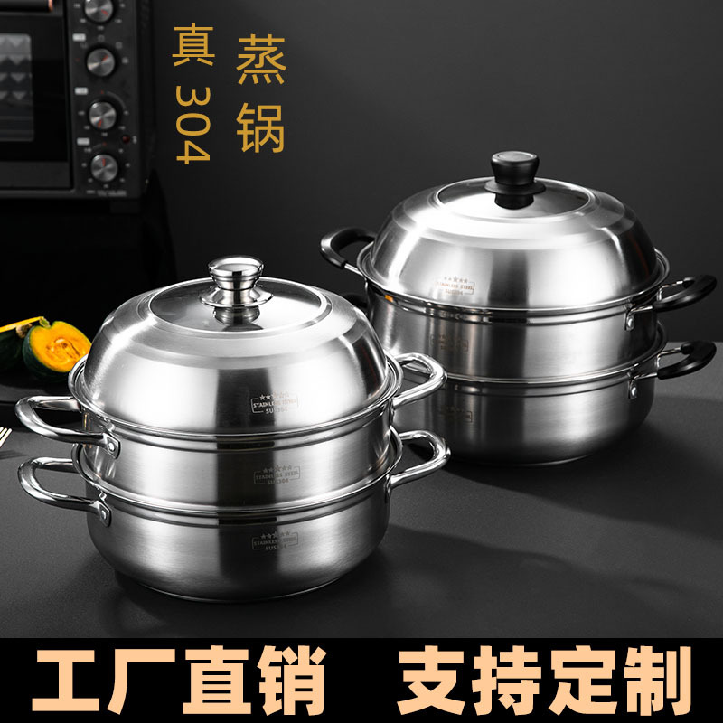 蒸し鍋304ステンレス食品級家庭用二重蒸魚鍋卸売りプレゼント大容量厚さ三層蒸し鍋