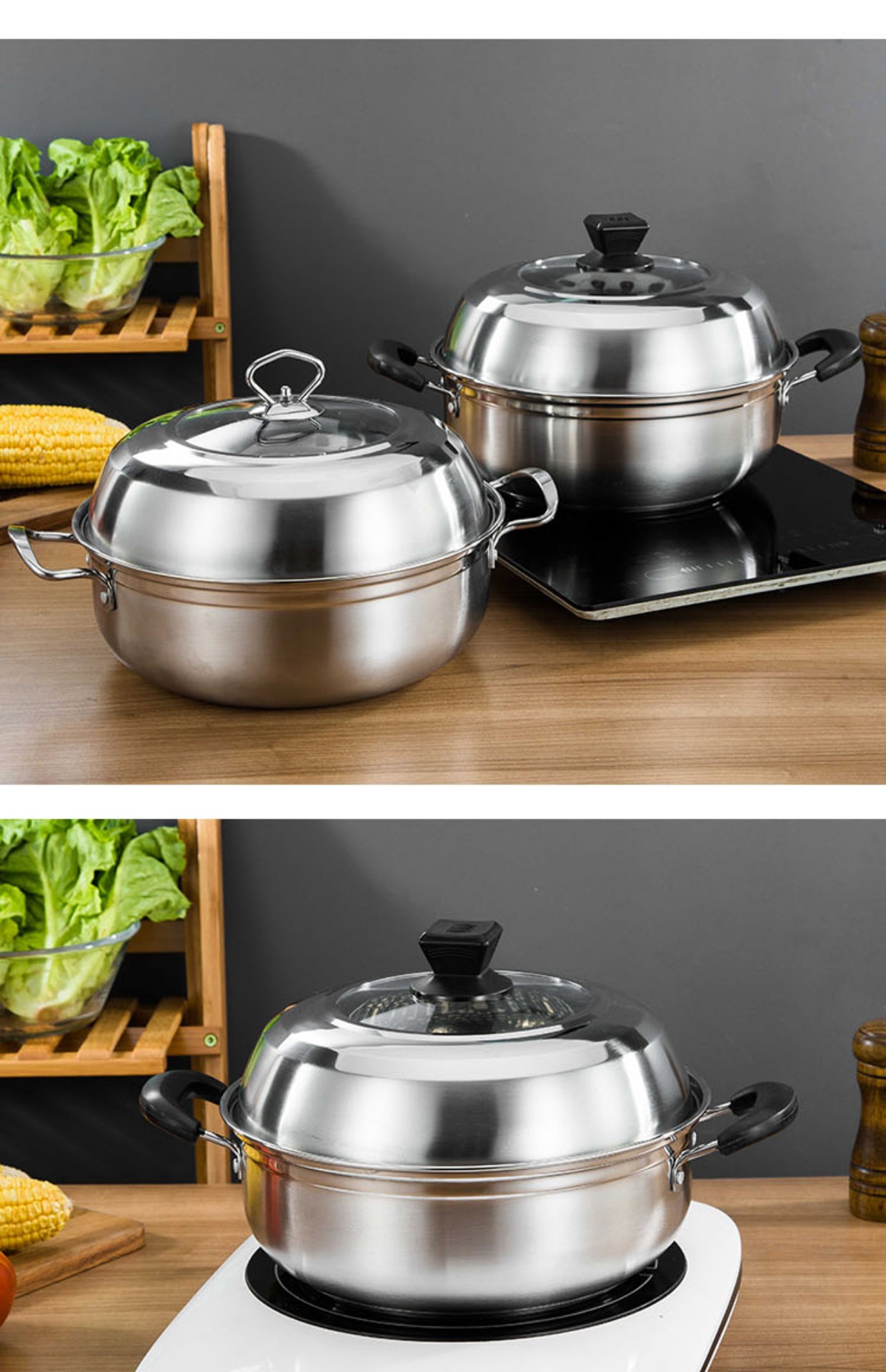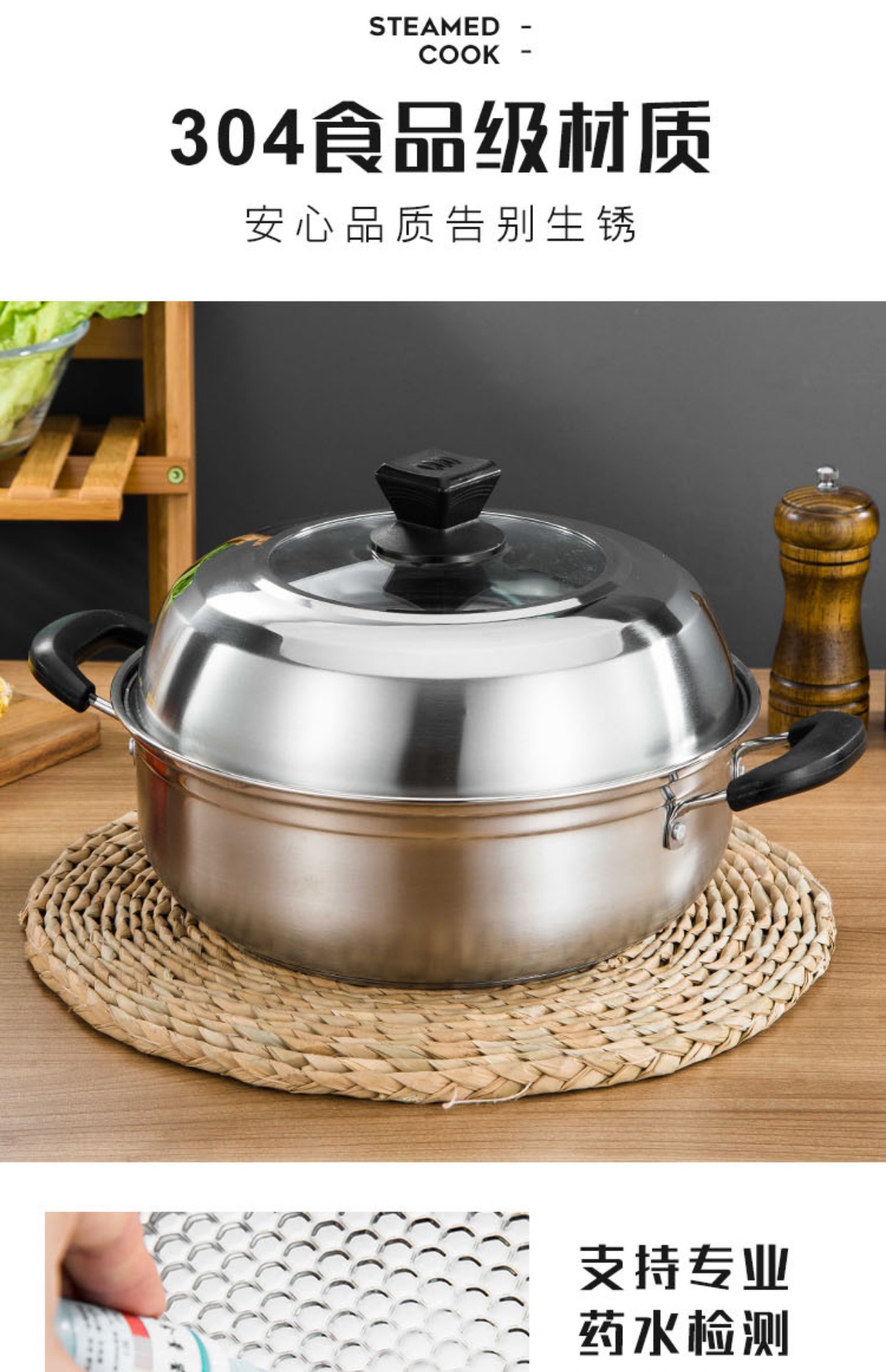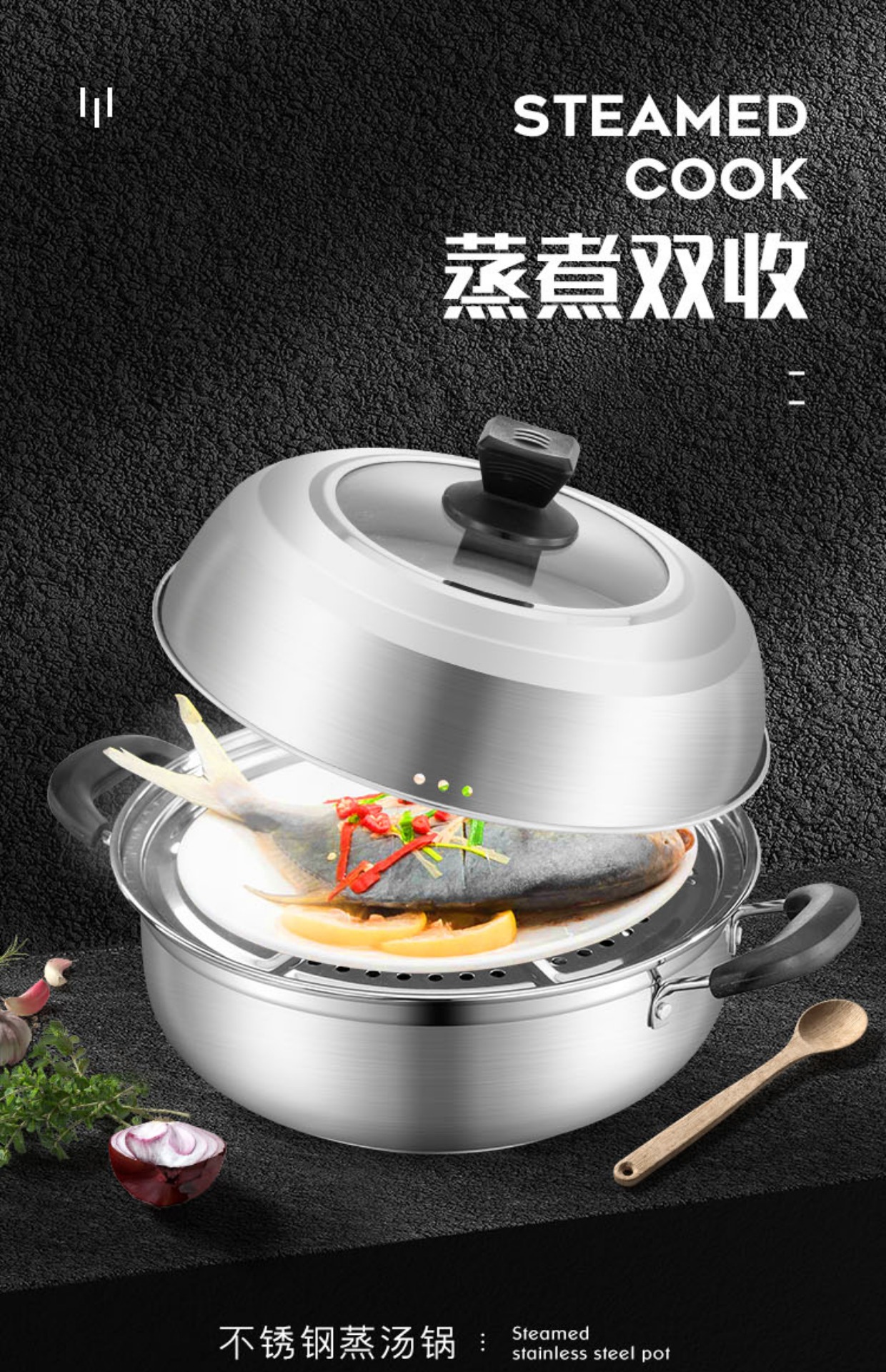 二重スープ蒸し鍋304ステンレス家庭用厚い蒸し魚鍋電磁炉共通代理プレゼント蒸し鍋