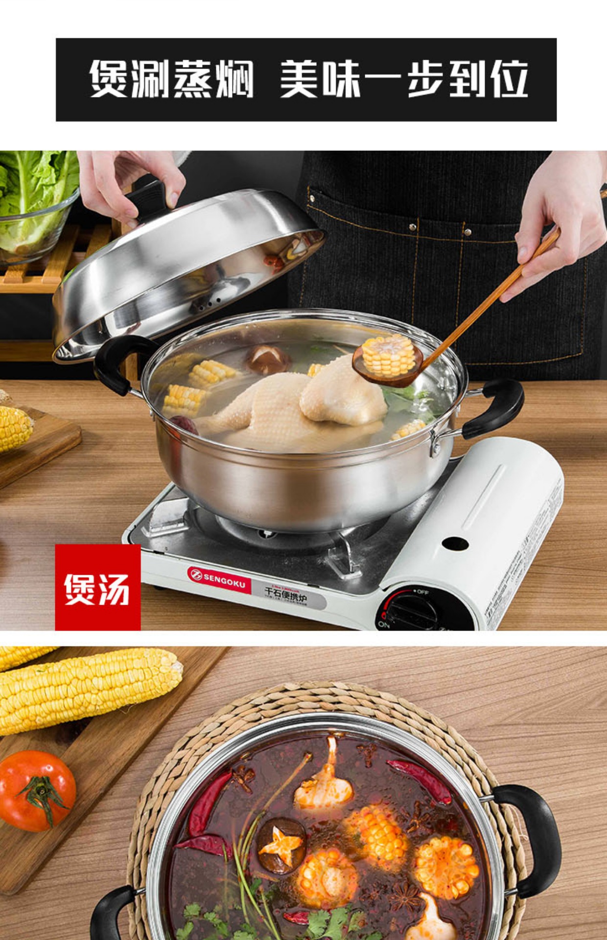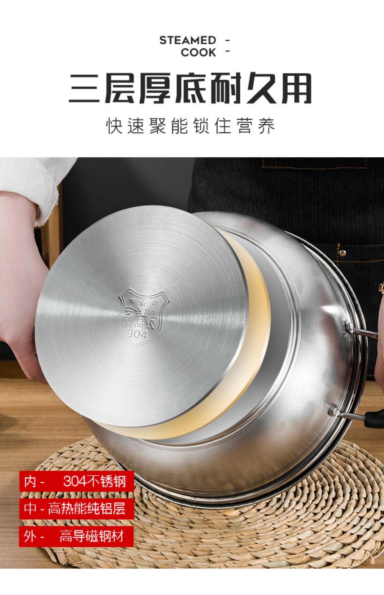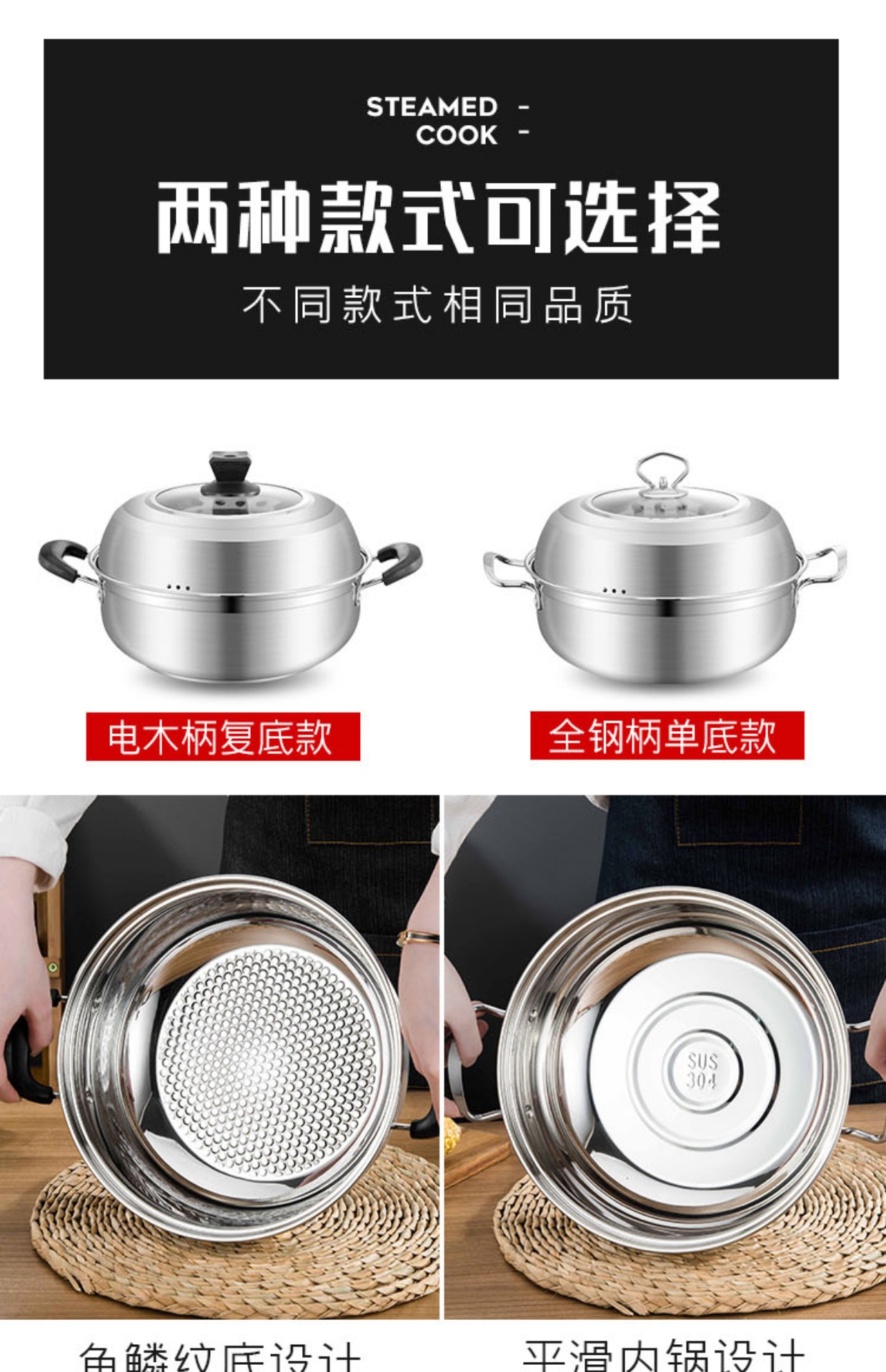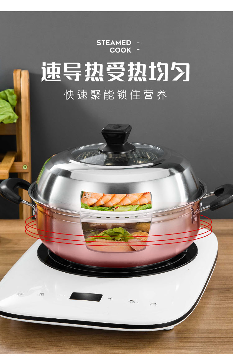 二重スープ蒸し鍋304ステンレス家庭用厚い蒸し魚鍋電磁炉共通代理プレゼント蒸し鍋