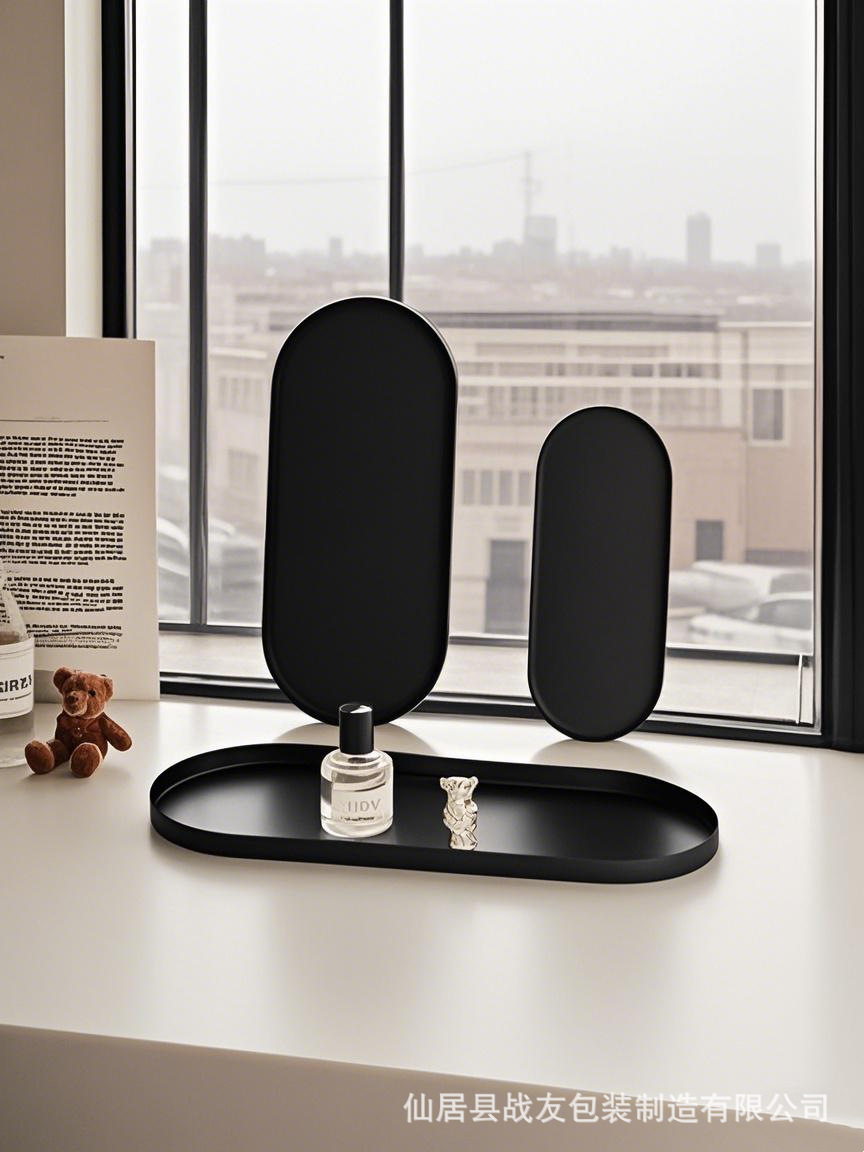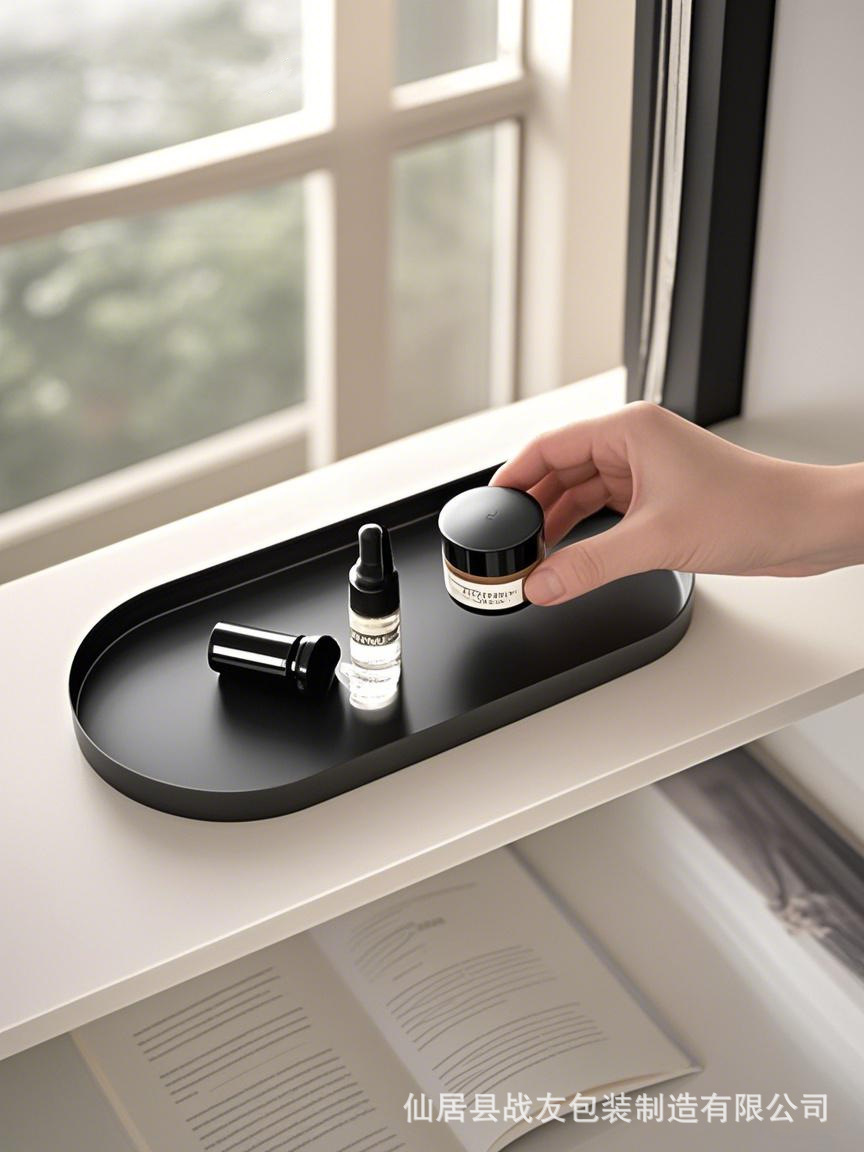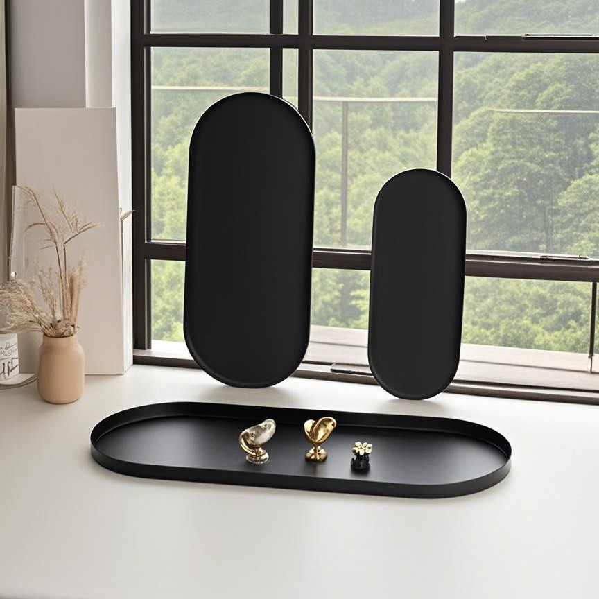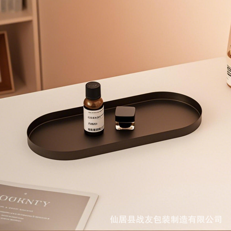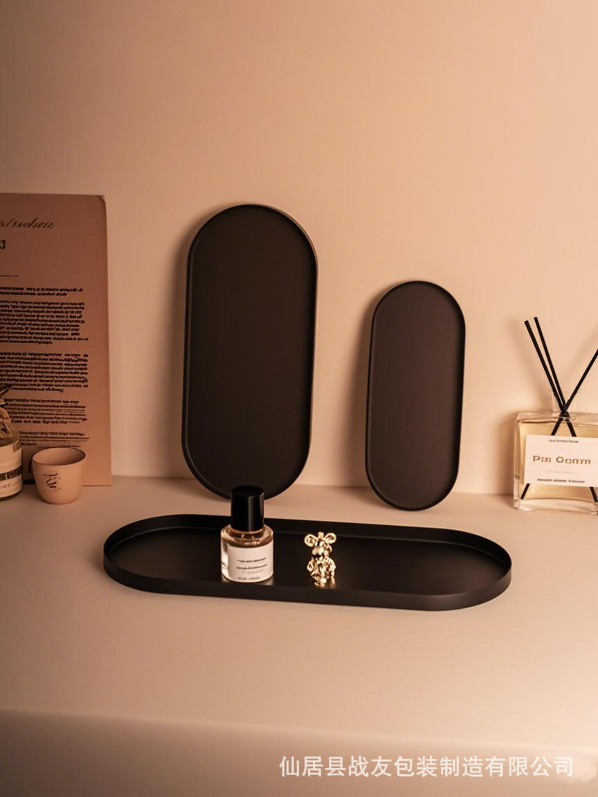 クロスボーダーアイアン口紅収納トレイカウンタートップジュエリー収納トレイ寝室黒スキンケア製品ストレートエッジオーバルトレイ