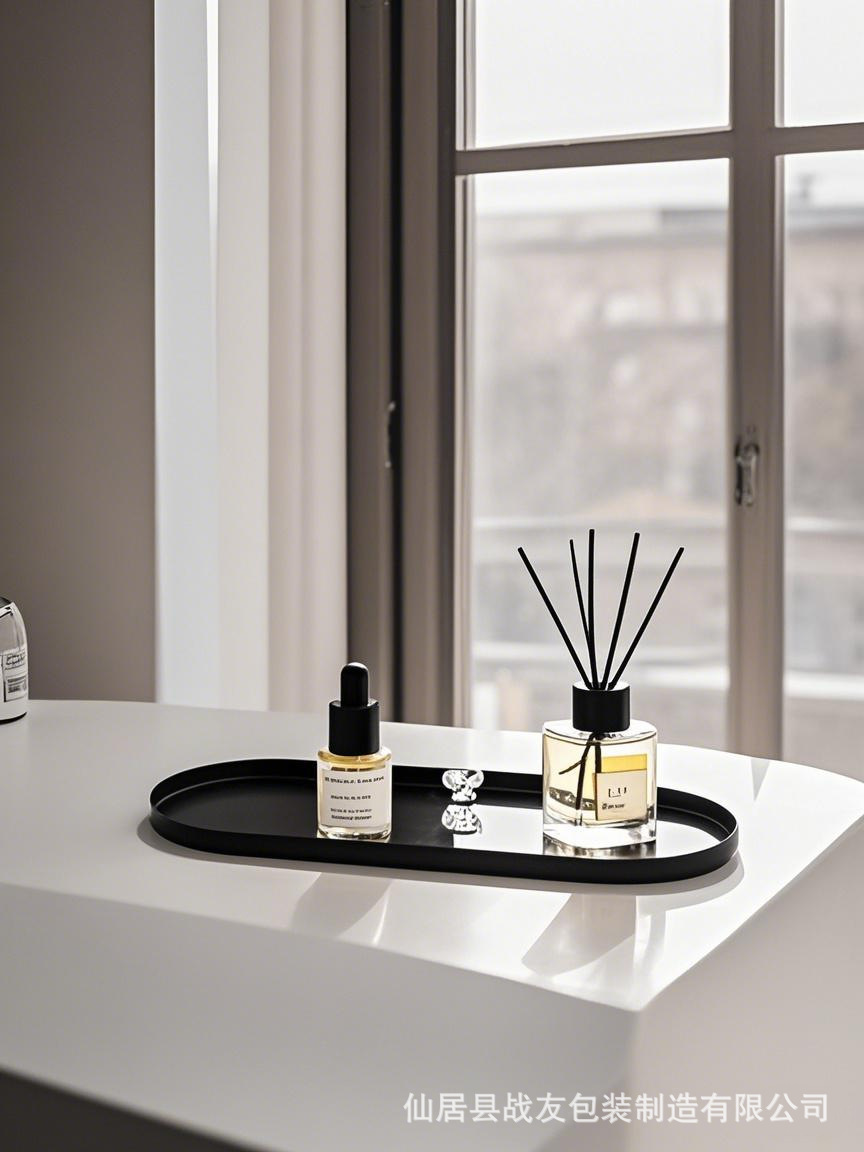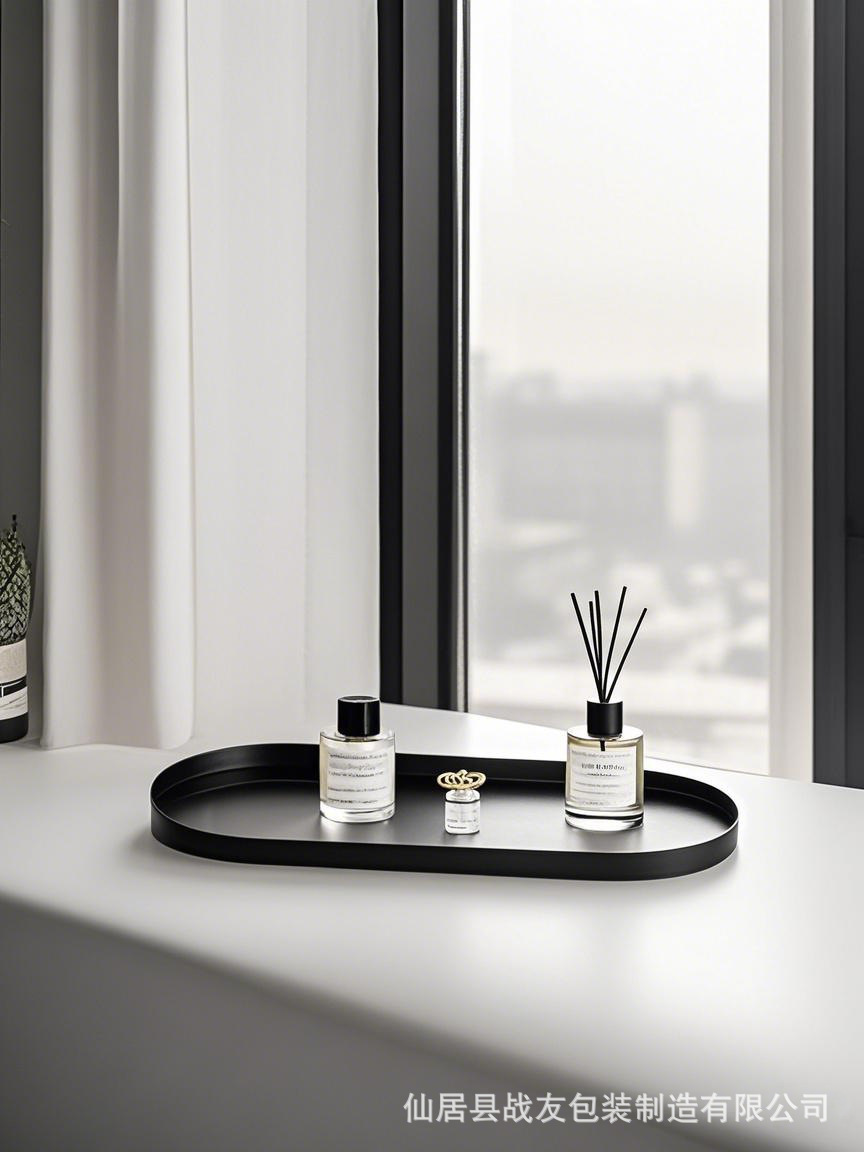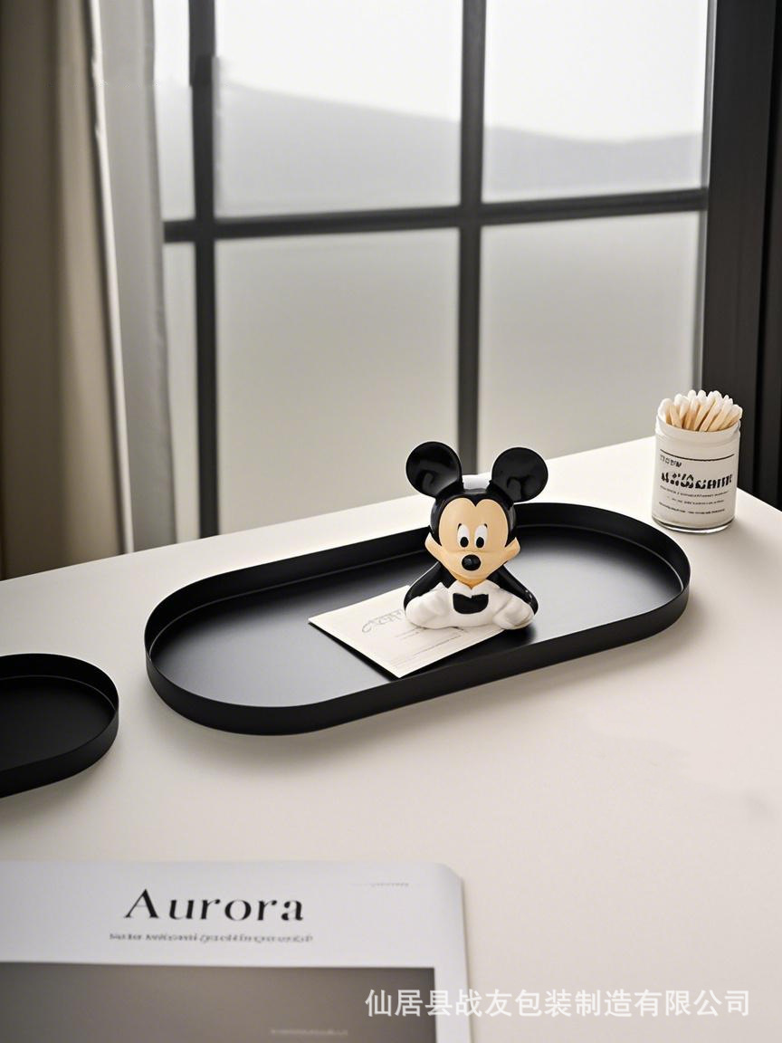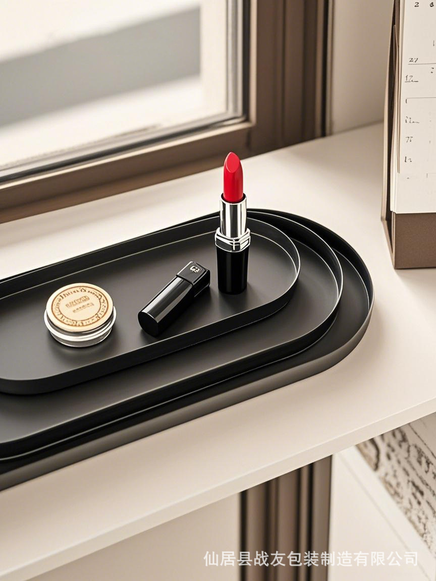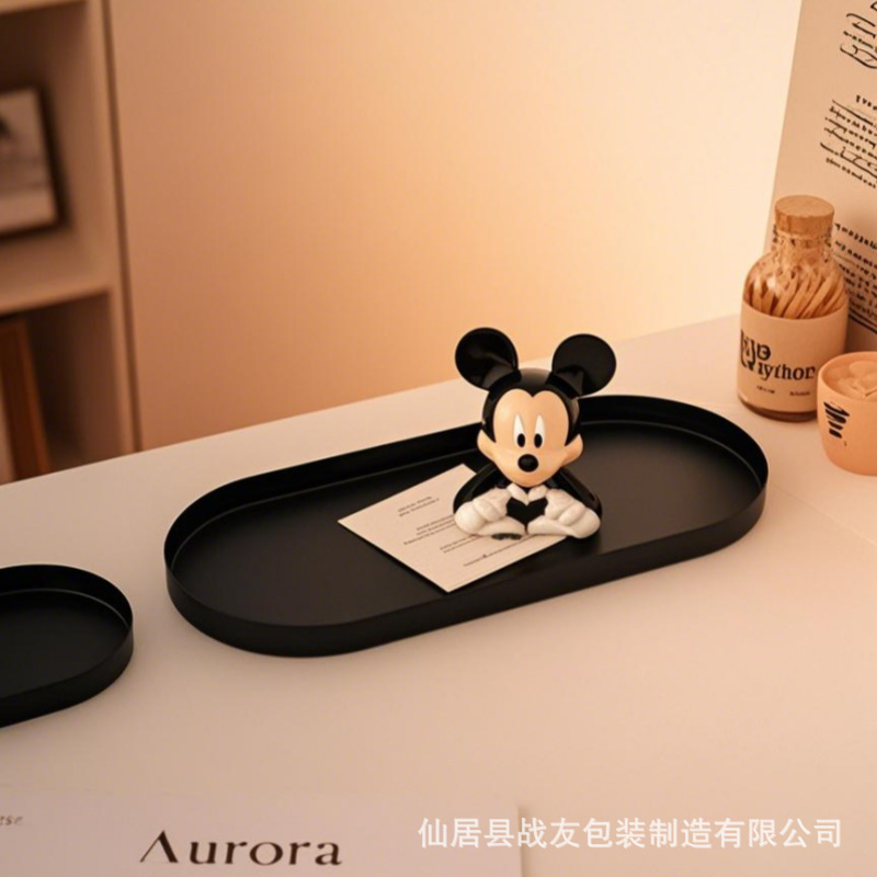 クロスボーダーアイアン口紅収納トレイカウンタートップジュエリー収納トレイ寝室黒スキンケア製品ストレートエッジオーバルトレイ