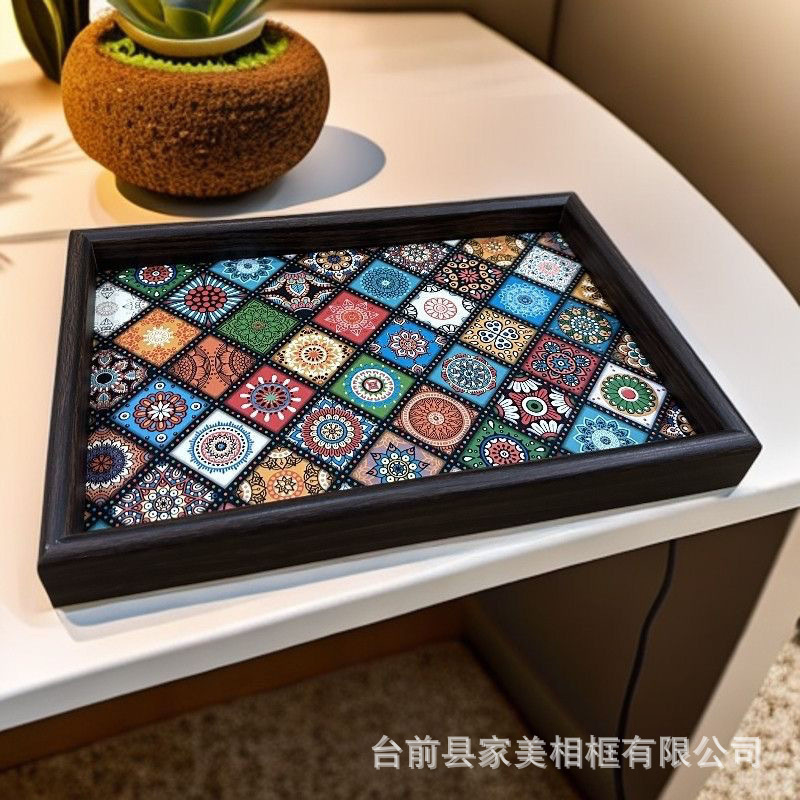 波西米亚风托盘异域客厅桌面收纳首饰收纳玄关家用木质皮革托盘