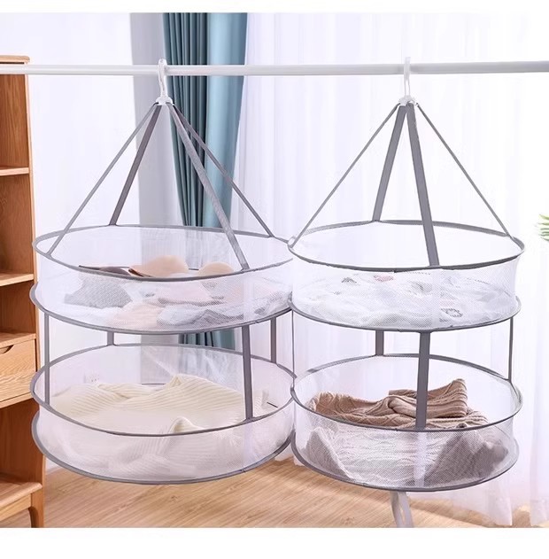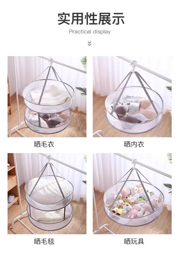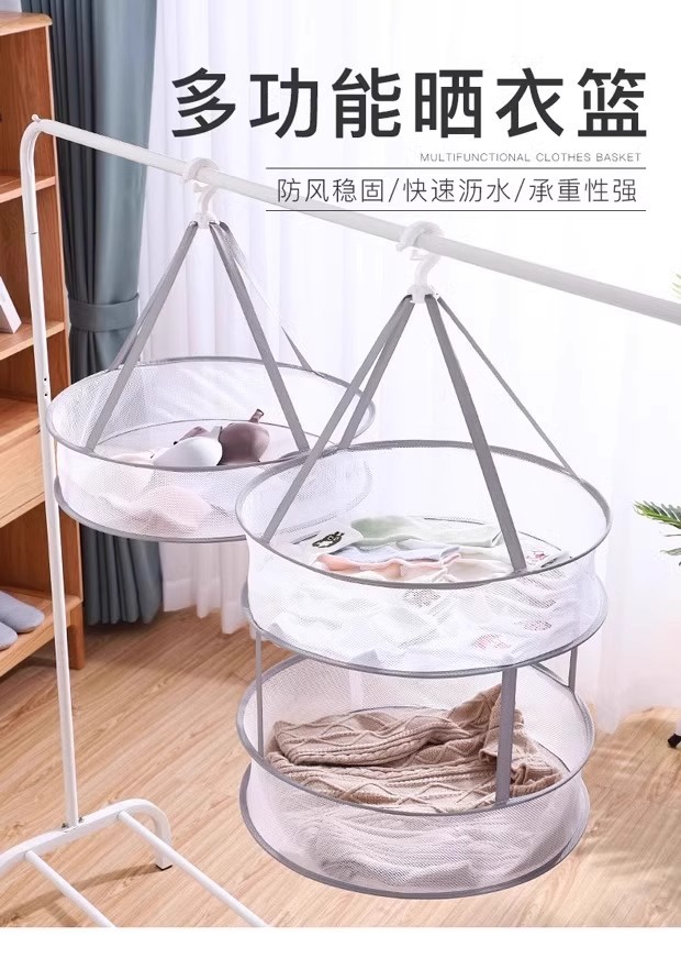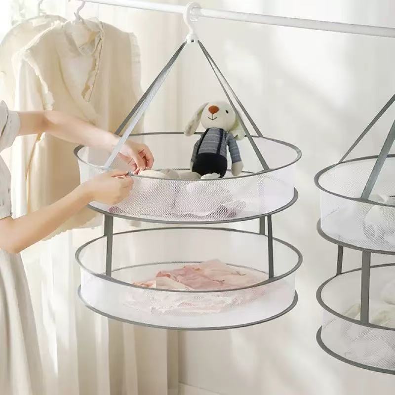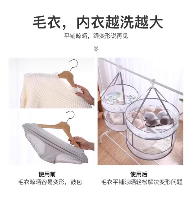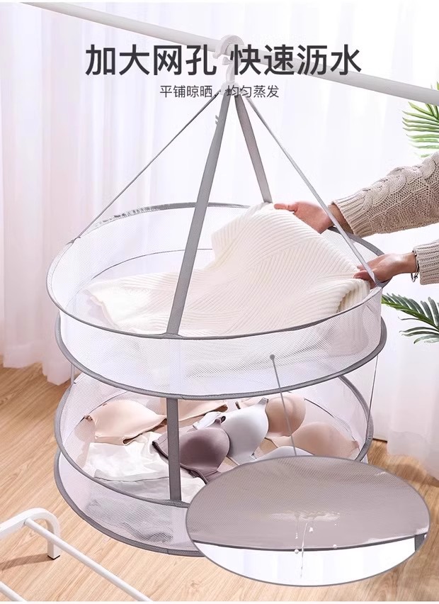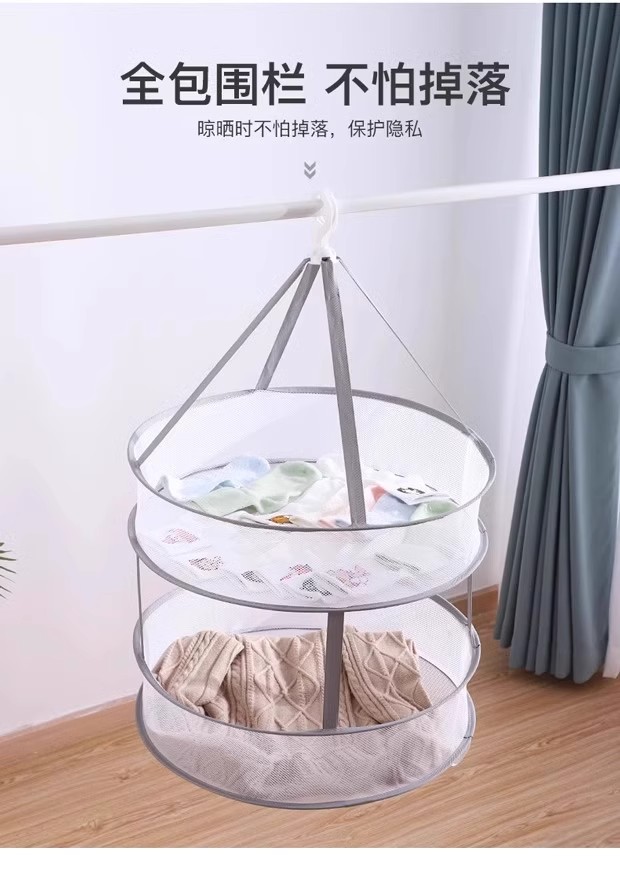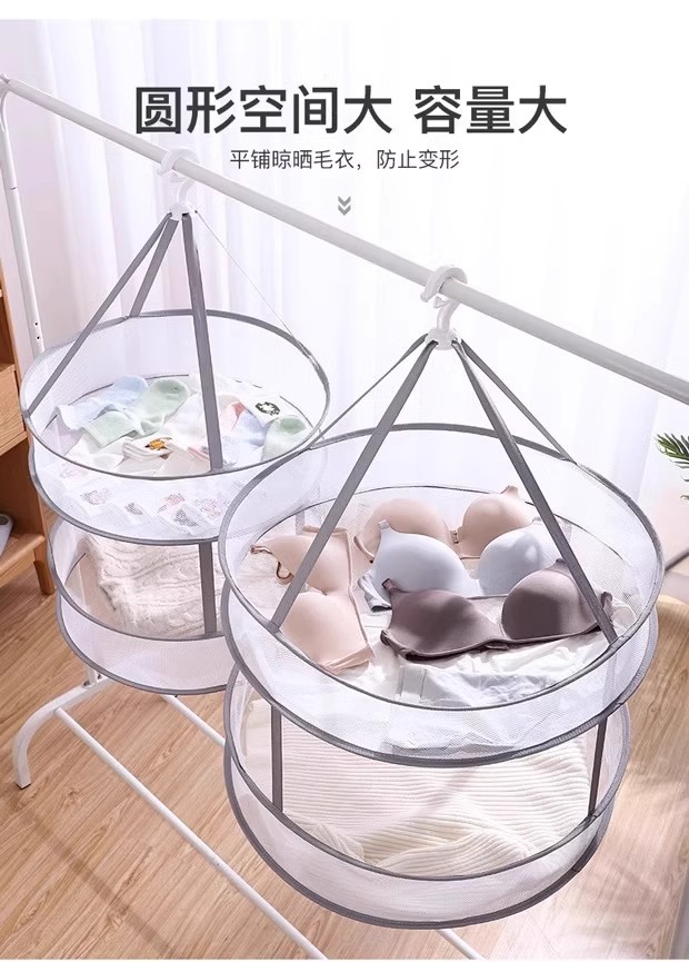 二重物干しネット物干しネットポケット家庭用物干しバスケット下着靴下セーター物干し神器物干し折りたたみ可能