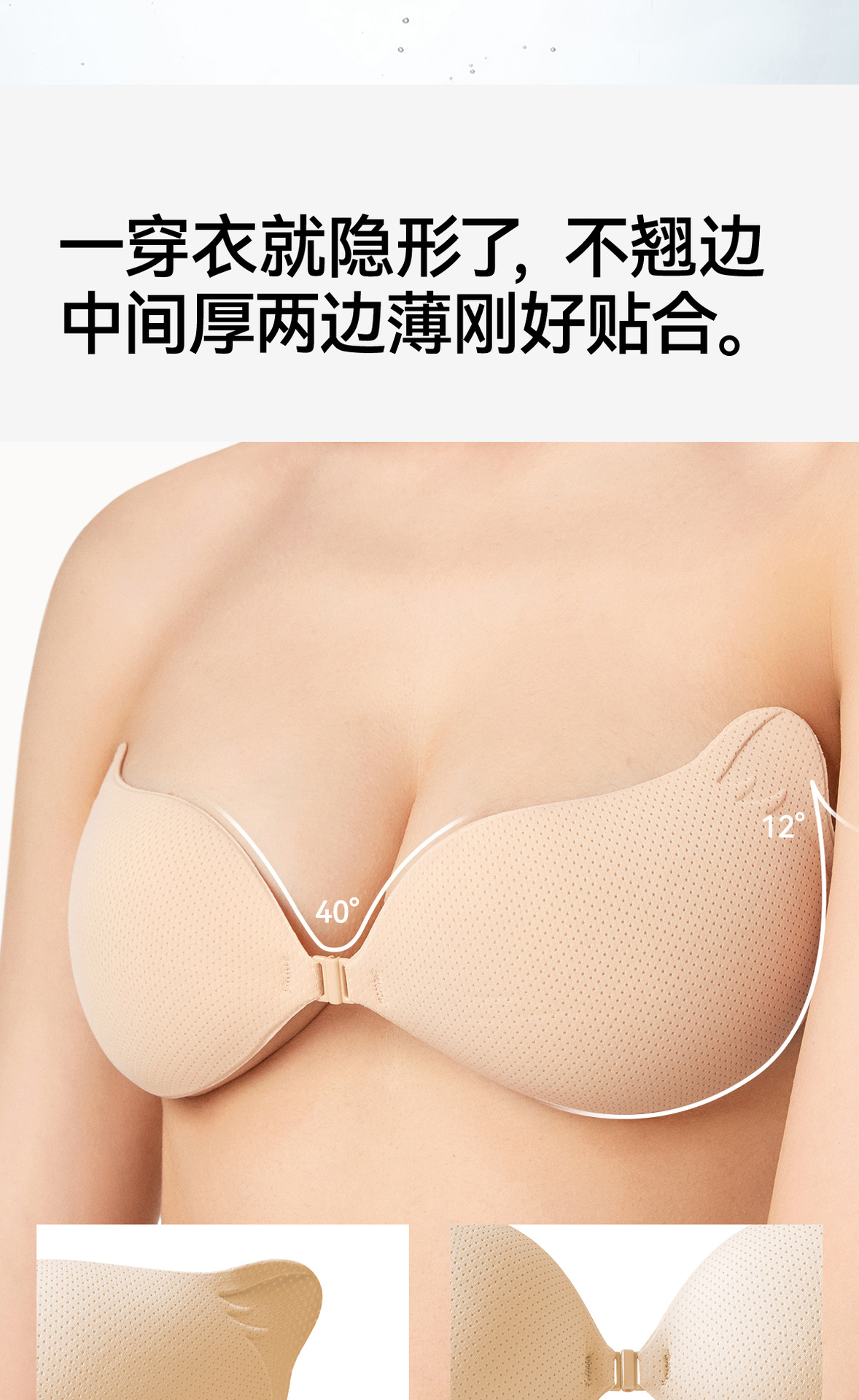 可斐芒果杯胸贴聚拢上托小胸显大隐形无痕夏季婚纱吊带专用加厚款