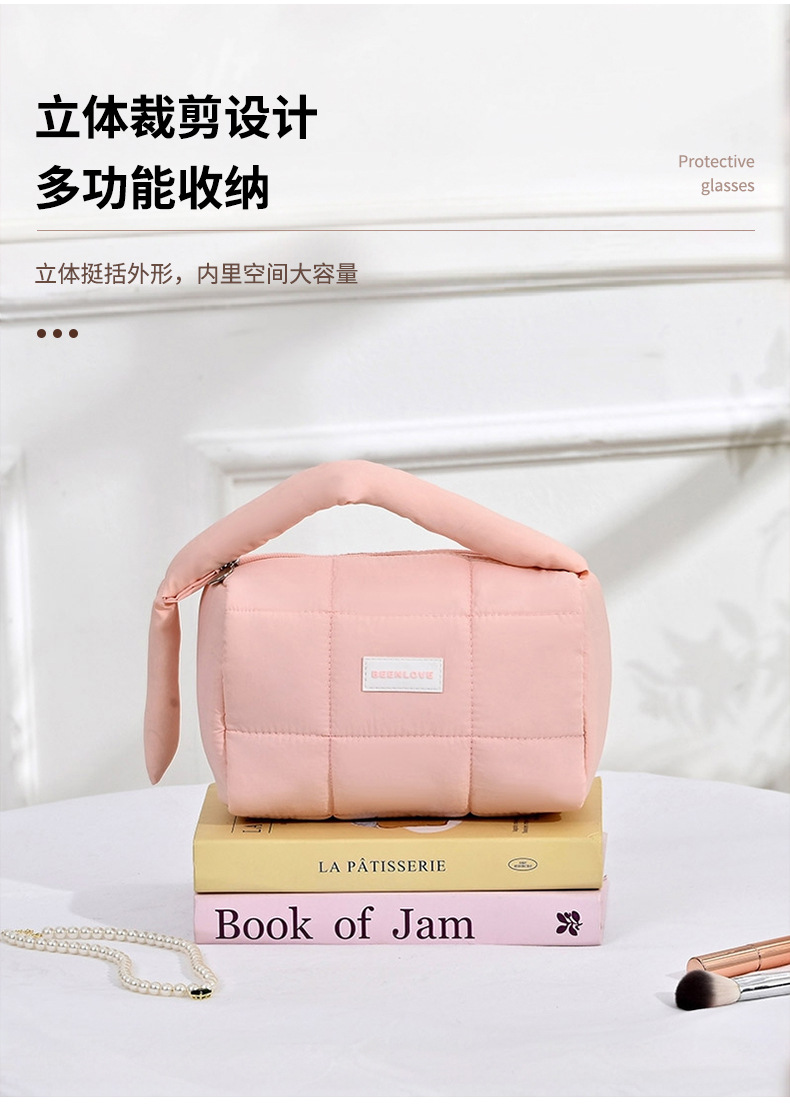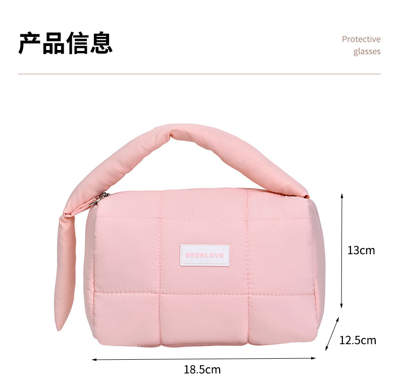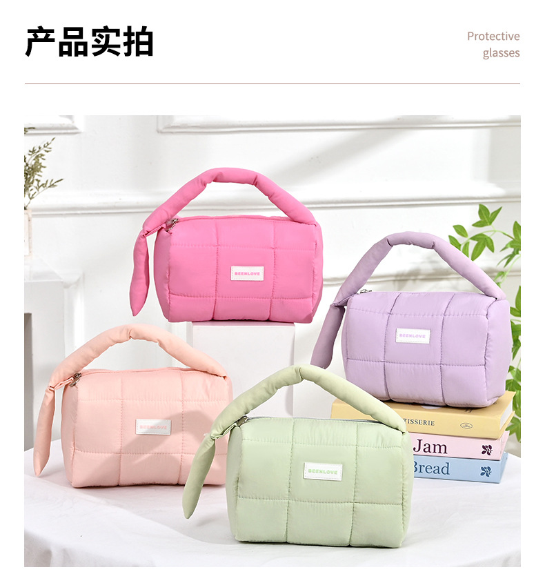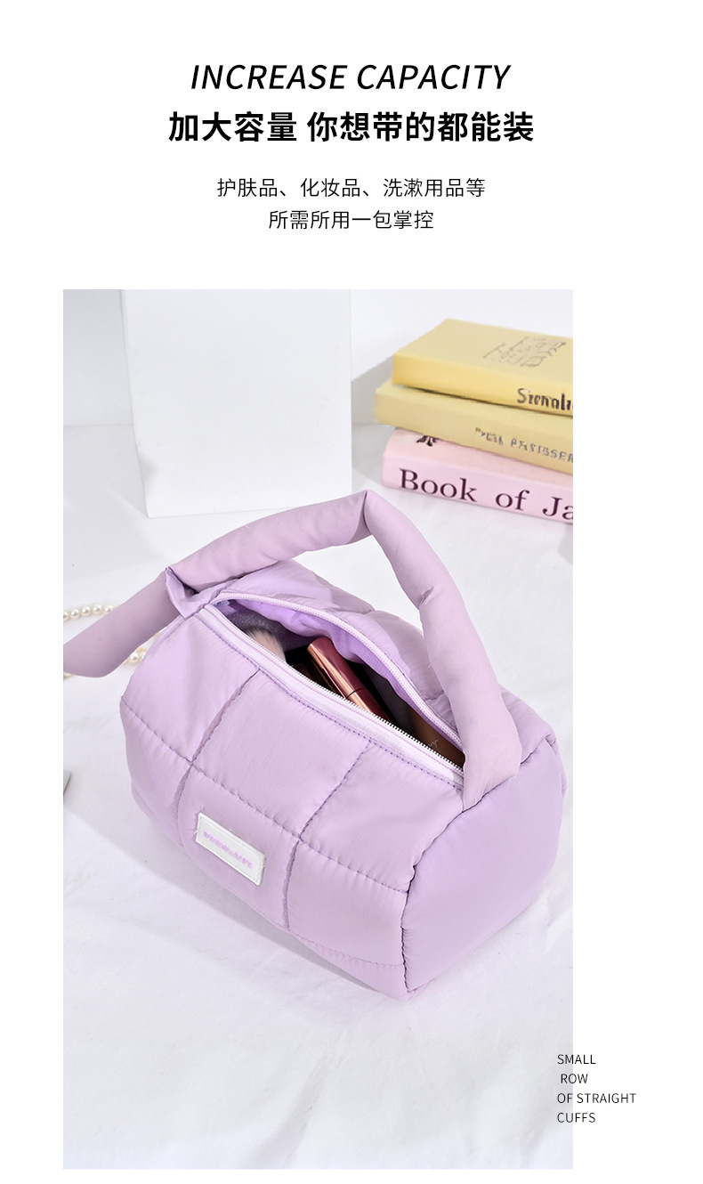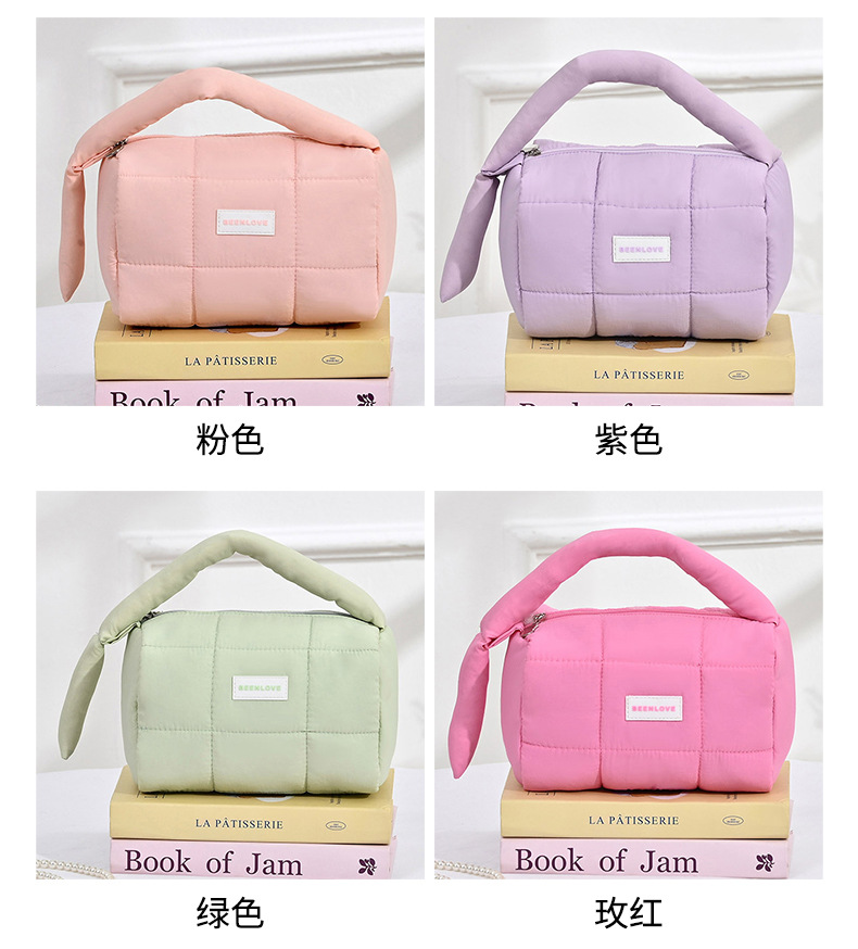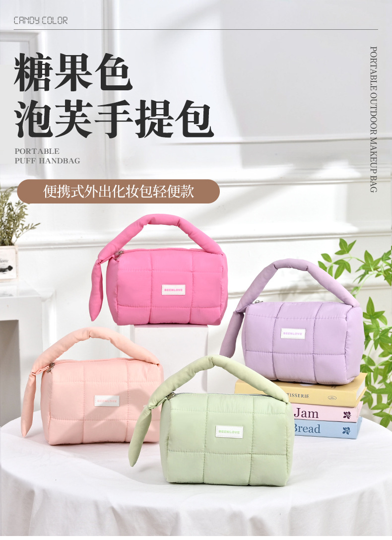 泡芙手提收纳包糖果色充棉化妆品收纳包化妆包大容量高级感