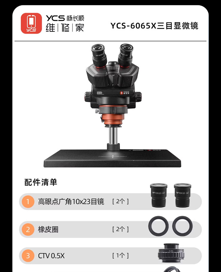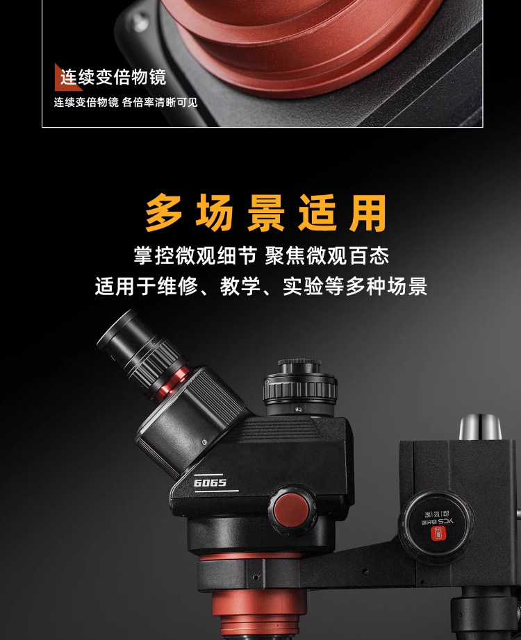 楊長順修理家YCS-6065X三目顕微鏡0.6X-6.5X倍率連続変倍修理設備