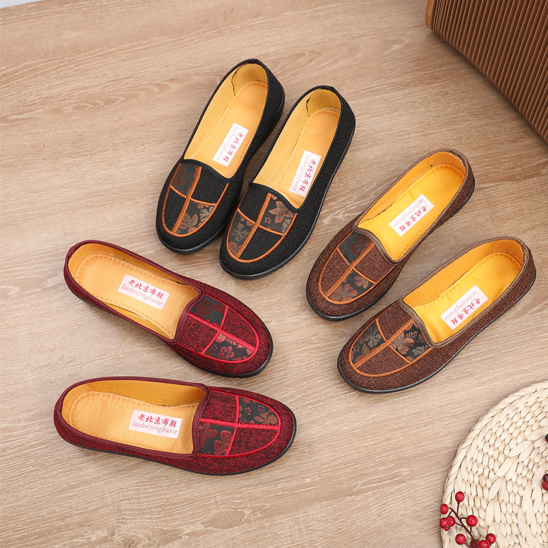 春と秋の古い北京布靴弓刺繍婦人靴中高年の母親の靴スリッポンマタニティシューズメーカー卸売