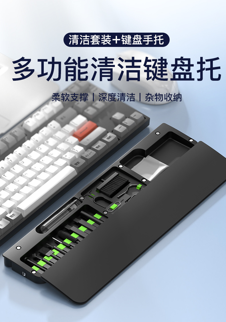 国境を越えた新しい多機能クリーニングセットデスクトップストレージツーティンワンキーボードハンドレスト快適なオフィスリストサポート