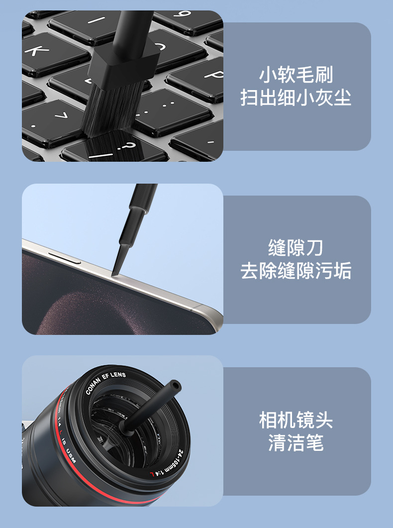 クロスミラーQ20多機能クリーニングセットパソコンのキーボードブラシのイヤホンの清潔ペンの携帯電話のスクリーンはほこりのブラシを拭きます。