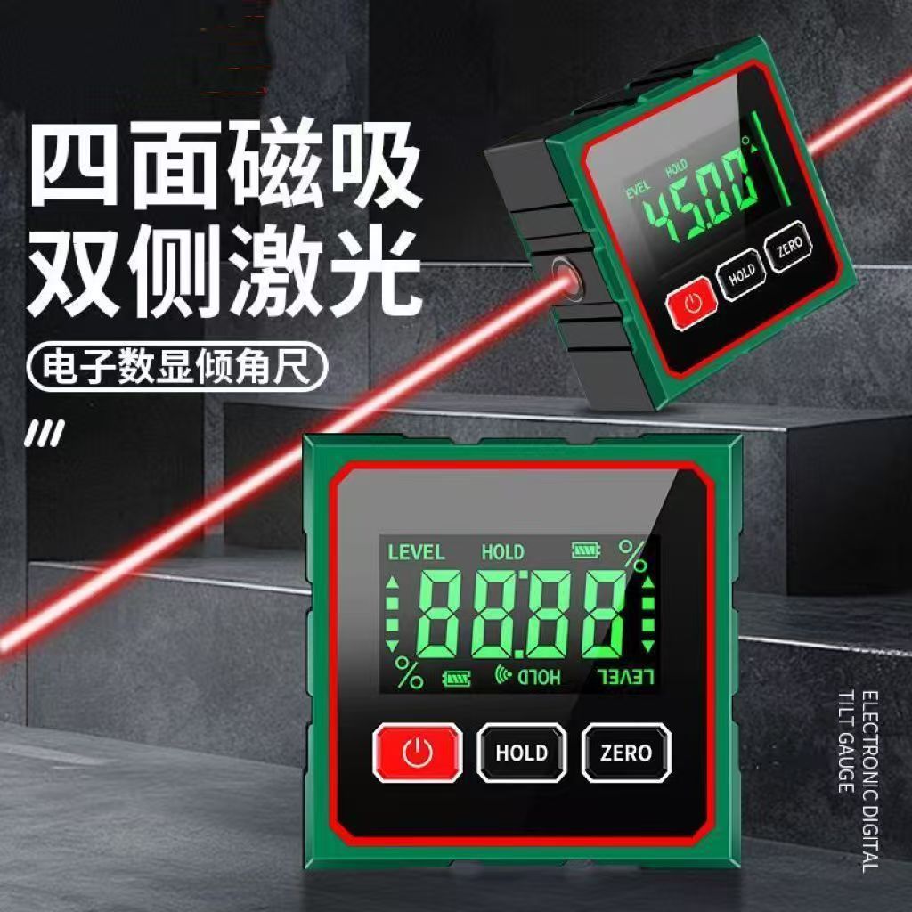 厂家直销数显倾角仪四面强磁双激光倾角盒测量坡度水平仪优倾角仪