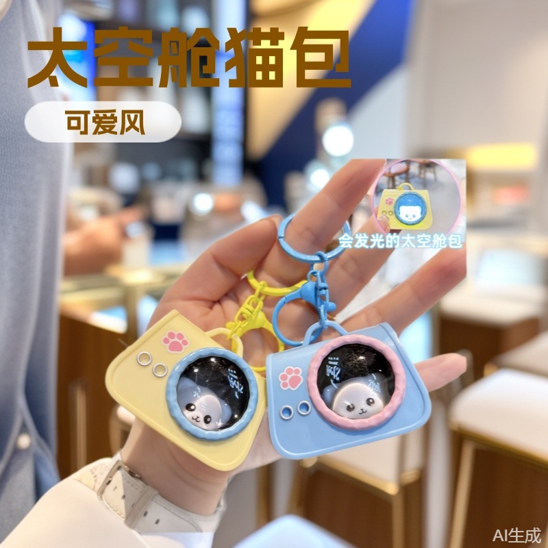可爱小夜灯太空舱猫包钥匙扣氛围灯钥匙链包包挂件爪机氛围感发光
