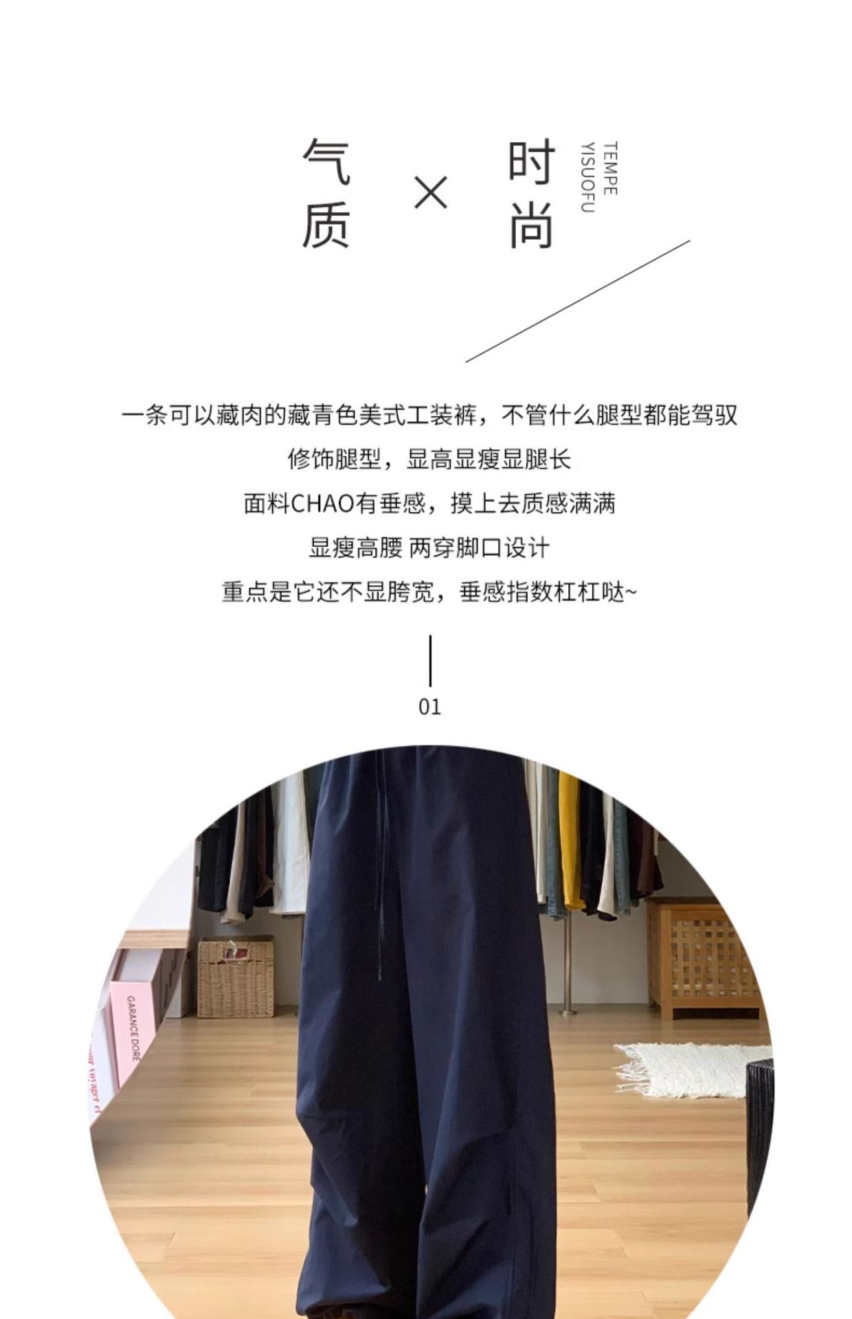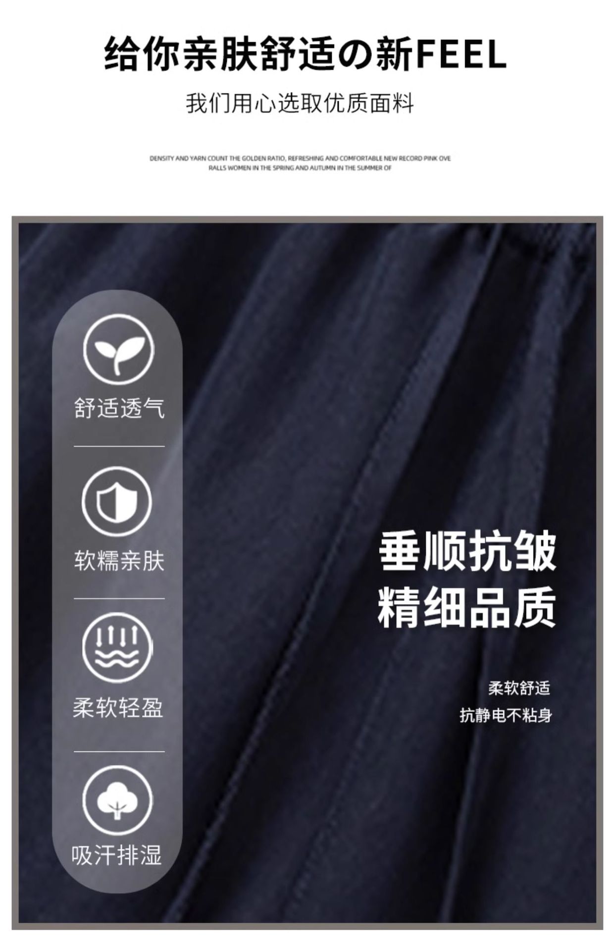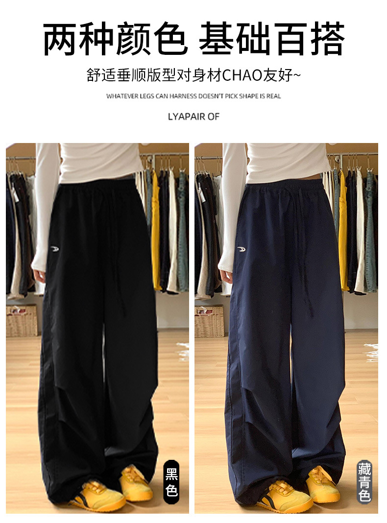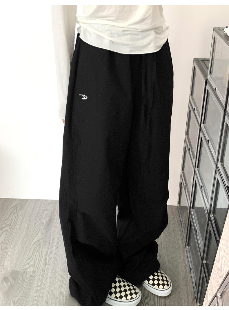 紺色のワイドパンツ女春夏2025新型ゆるいストレートカジュアル速乾小柄刺繍ワイドパンツ