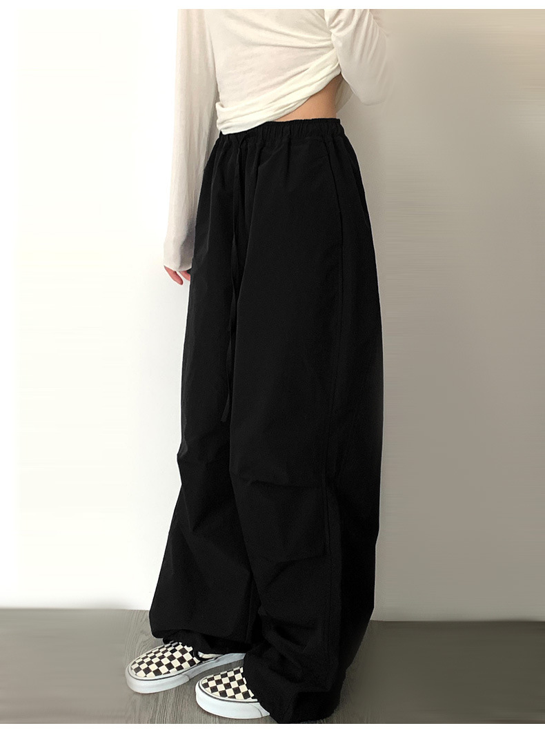 アメリカ風速乾スポーツワークパンツ レディース 2025秋冬新作 ハイウエスト ドレープ感 着痩せ効果 カジュアル ワイドパンツ 小柄さん向け