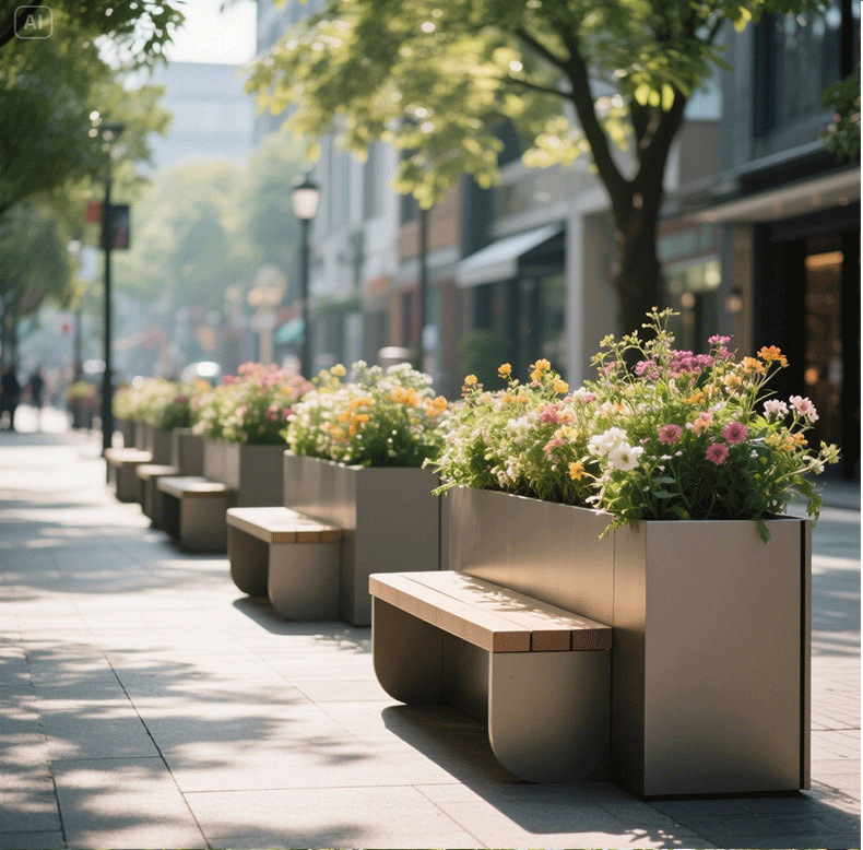 屋外ステンレス鋼複合フラワーボックス商業街道路金属パーティション営業部完成鉄花壇植栽ボックス