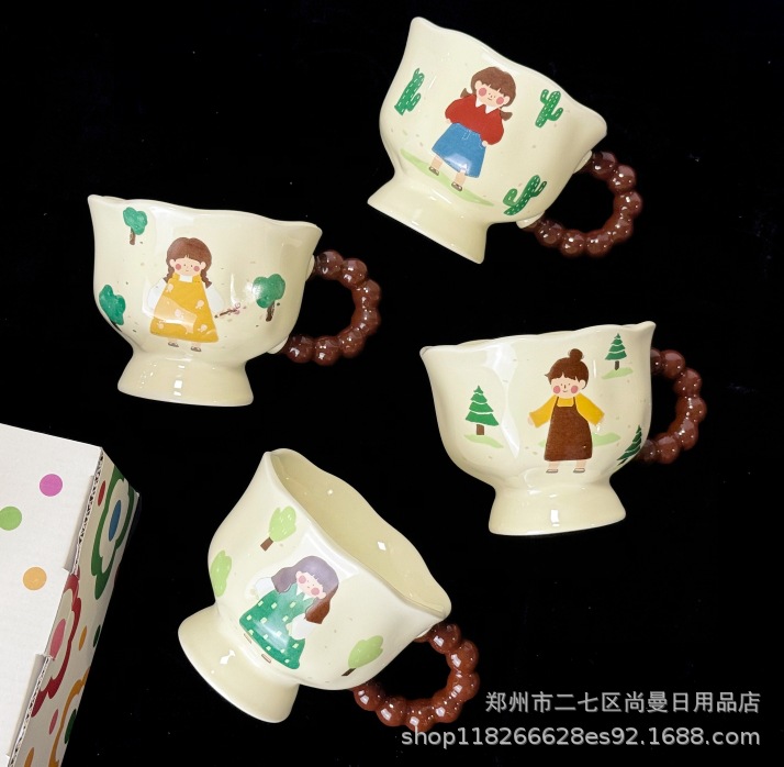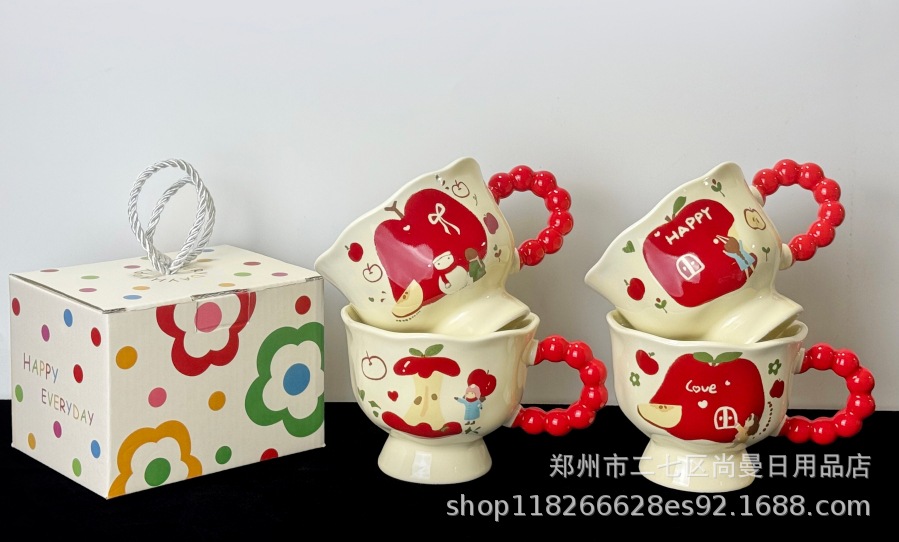 レトロアップルマグ、直径10*高さ9cm、ハンドル12.5cm、400MLポータブルカラーボックス包装、48セット/箱