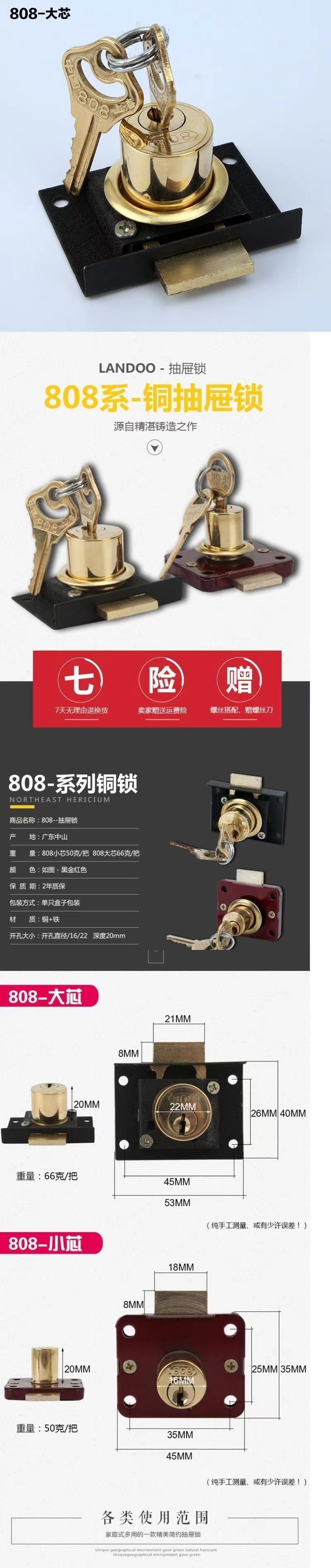 仕様 808小型ロックシリンダー,808大型ロックシリンダー
