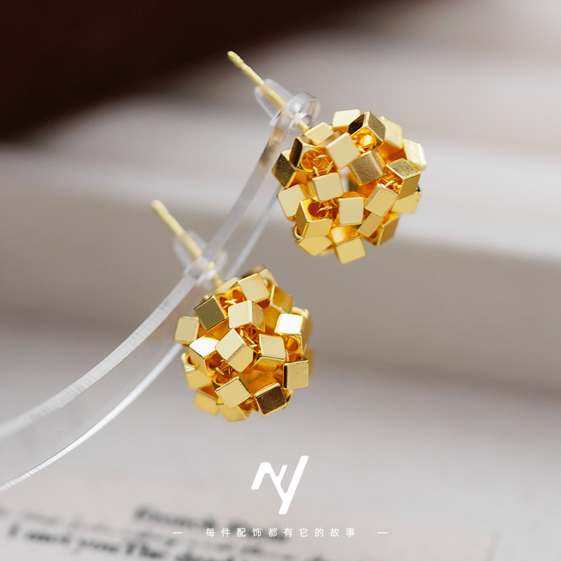 大衆のデザイン感フランスの不規則な手作りの金の四角のピアスの冷たいins風の金属感の女性の耳飾り