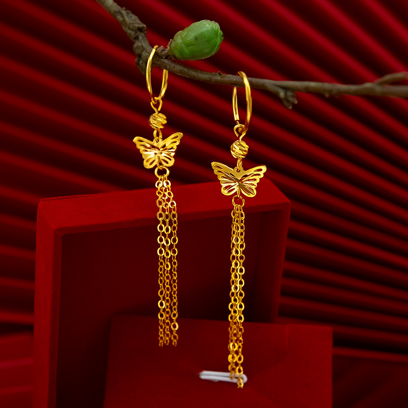 金メッキ女性結婚祝い蝶イヤリングベトナム沙金ファッション民族風レトロ蝶流蘇イヤリングピアス