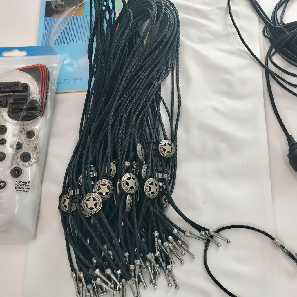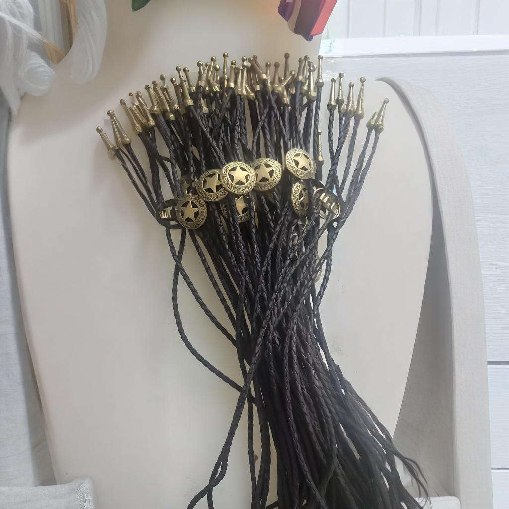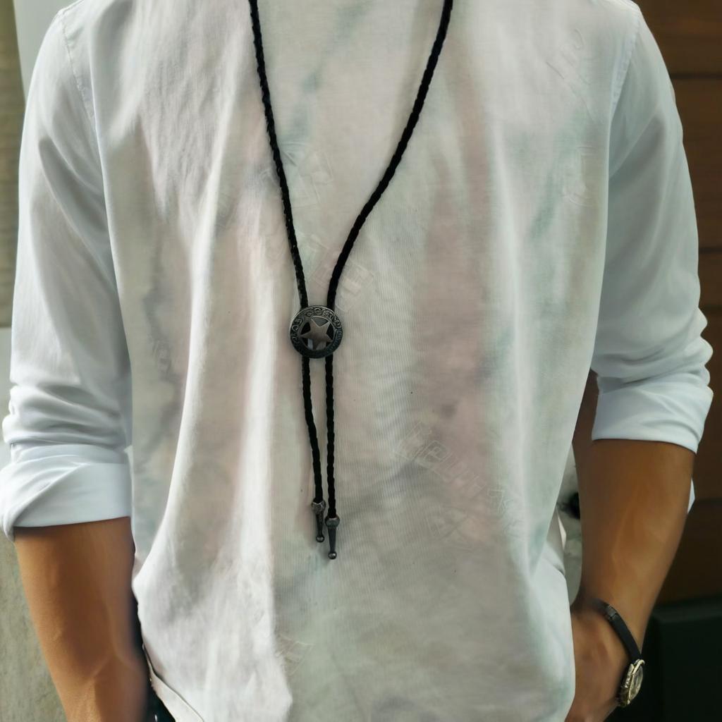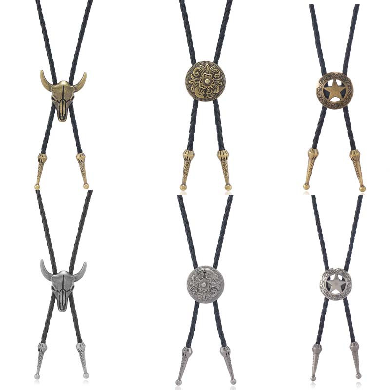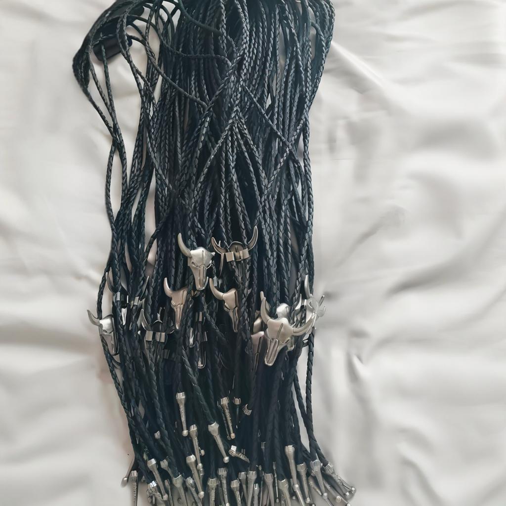 ポロのネックレスbolo tie欧米西部のデニムの長いタイプのペンダントの毛のチェーンの皮革はbola tieを調節することができます。