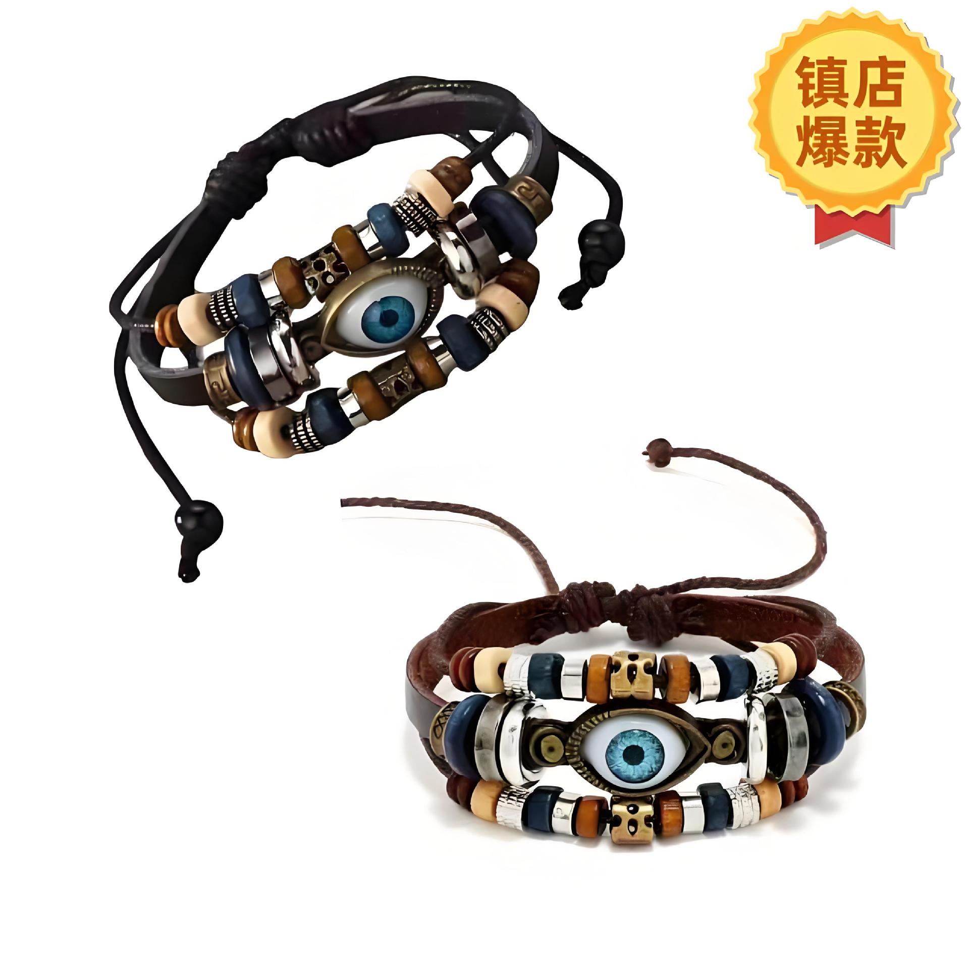 速売通クロスボーダー起爆アクセサリー欧米ビーズの目の牛革のブレスレットは男女の本革のブレスレットのアクセサリーを調節できます。