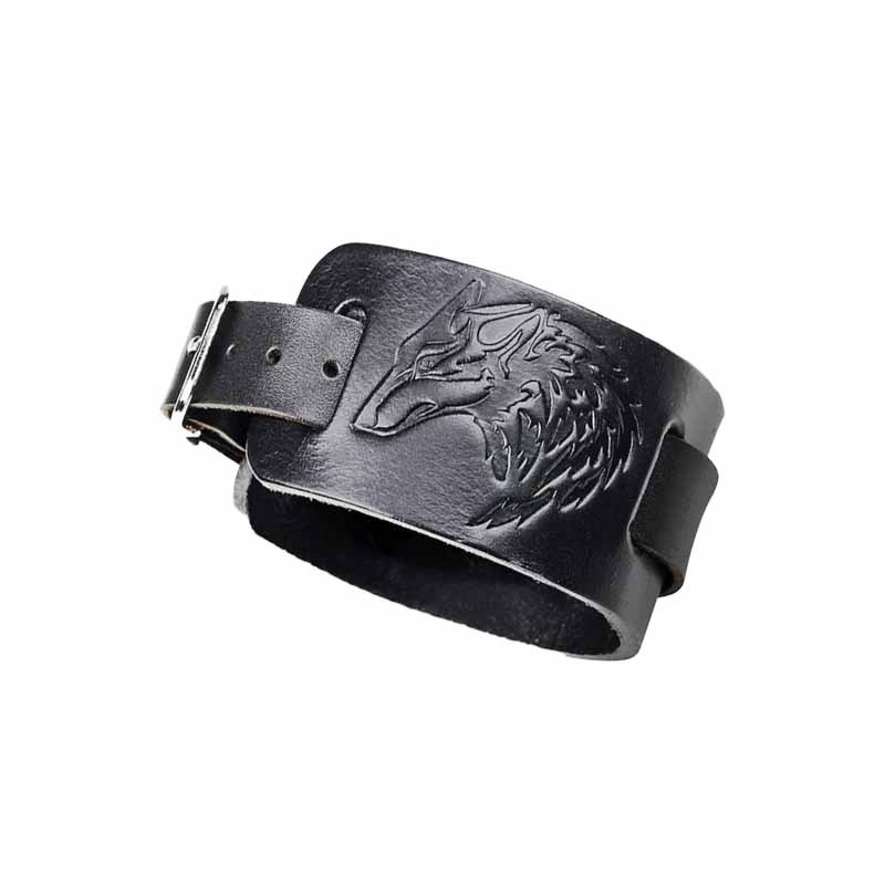 欧米風クロスボーダー本革狼頭型押し牛革ブレスレットパンクロックワイドバンドブレスレットアクセサリー工場卸売
